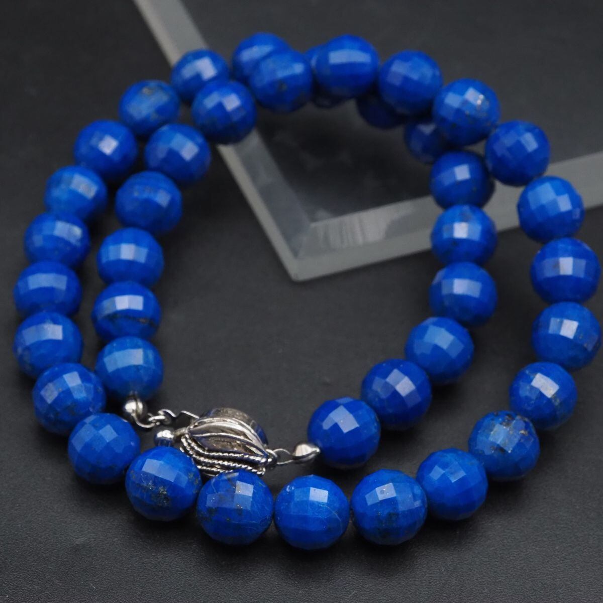 F755 ラピスラズリ SILVER刻印 ネックレス ミラーボールカット デザイン シルバー 12月誕生石
