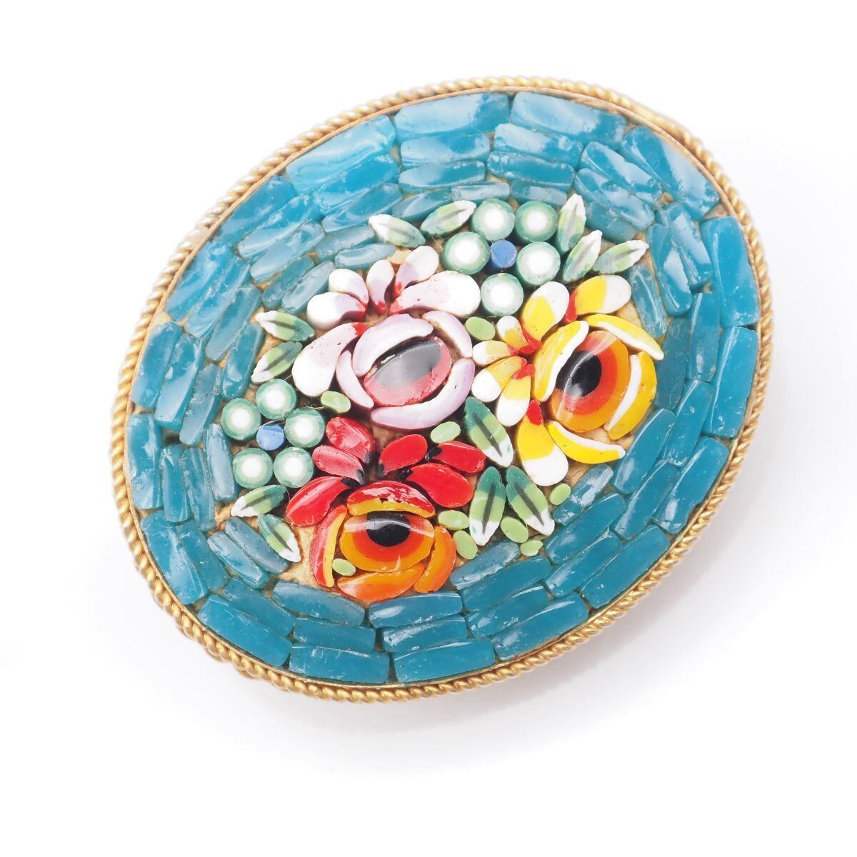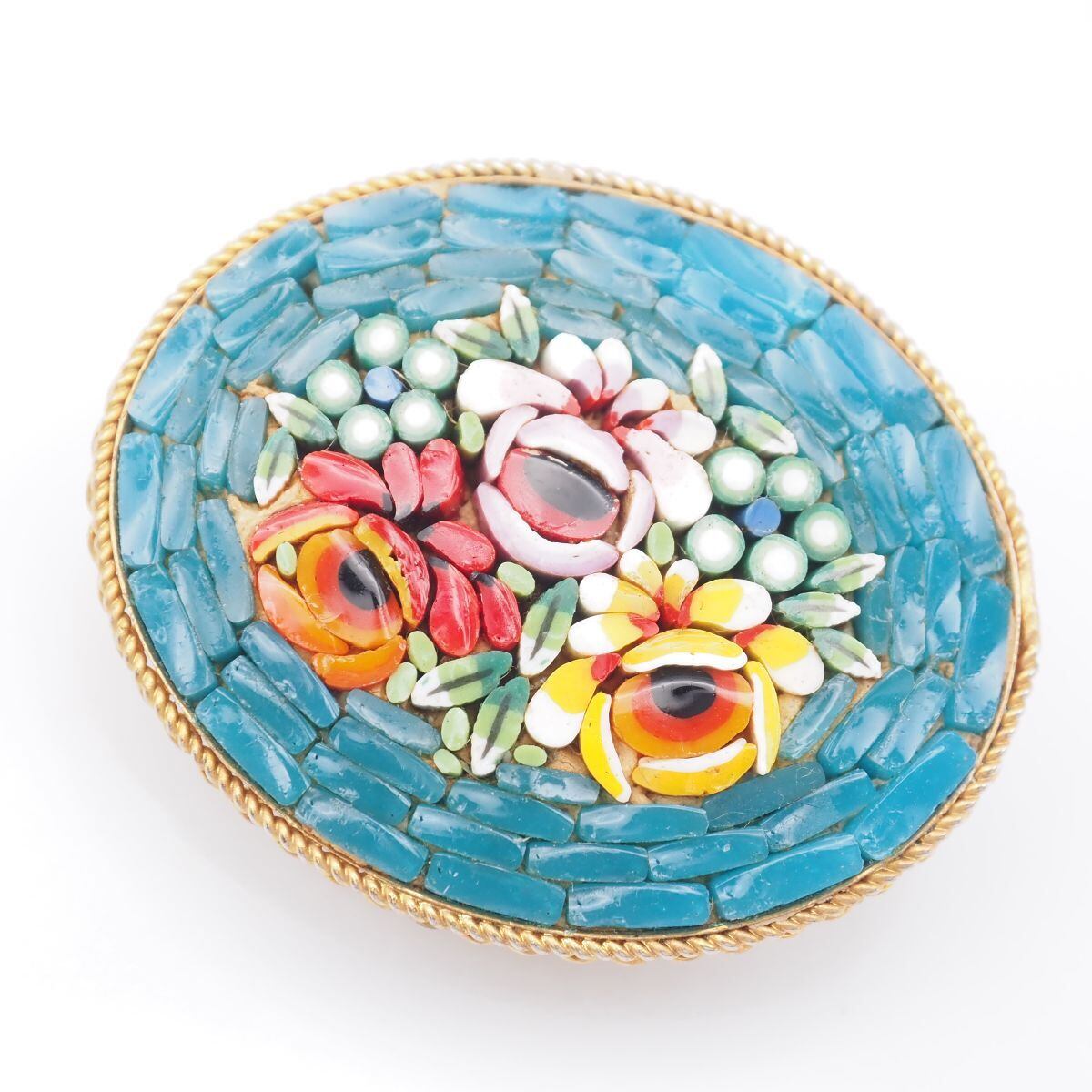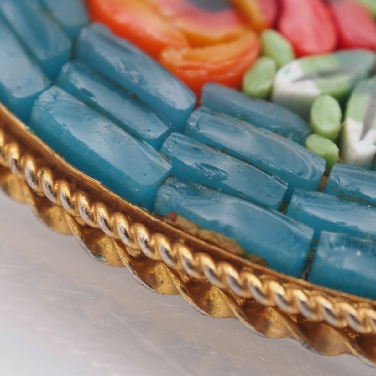 F620 モザイクガラス ITALY刻印 ブローチ フラワー ゴールド デザイン