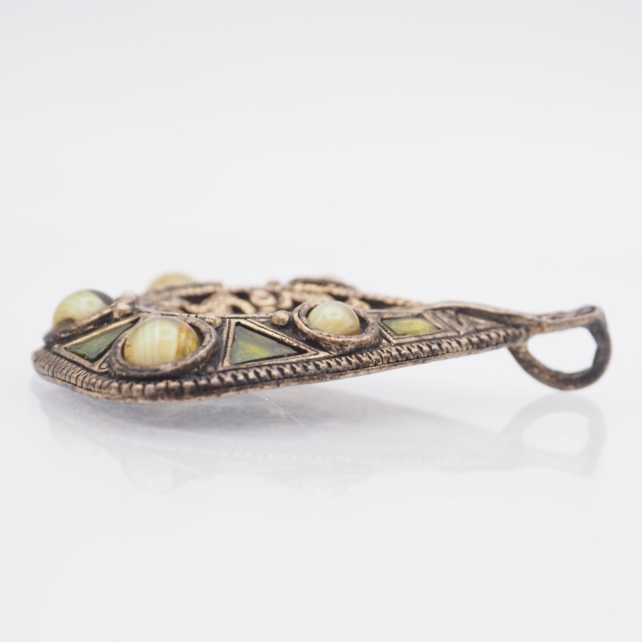 F609 イギリス ヴィンテージ MIRACLE ミラクル BRITAIN刻印 ペンダント トップ 天然石風 デザイン チャーム ヘッド 英国 アンティーク