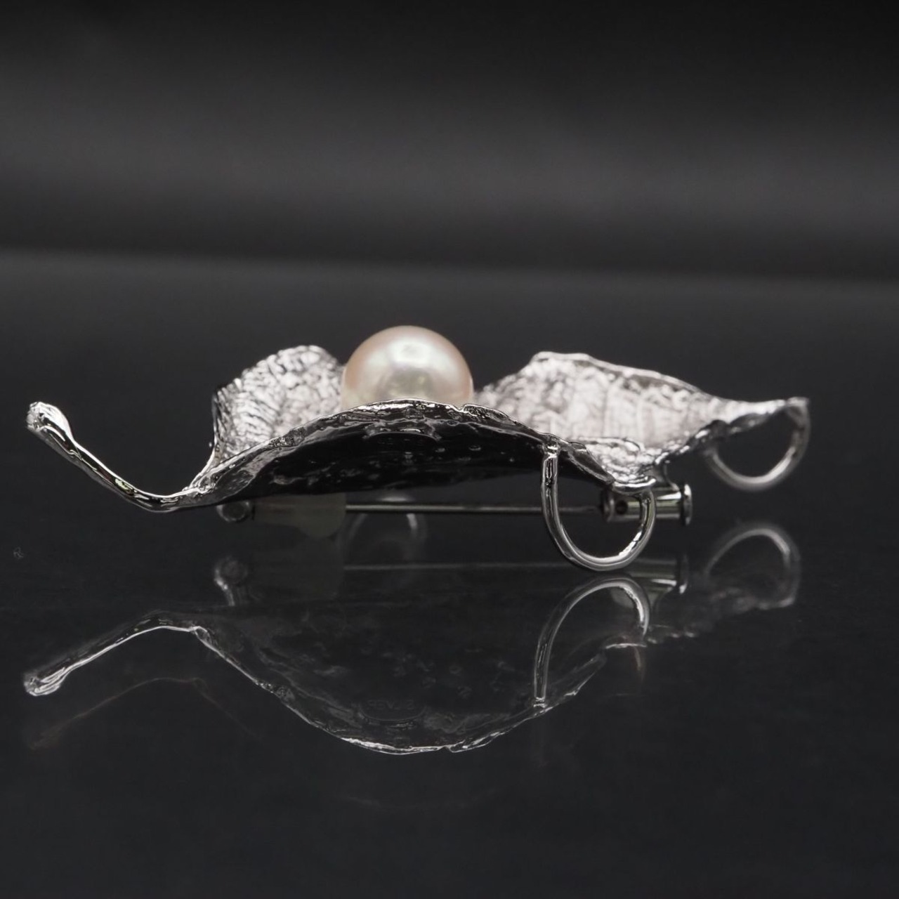 F786 本真珠 9.5mm珠 パール SILVER刻印 ブローチ リーフ デザイン シルバー コサージュ 6月誕生石