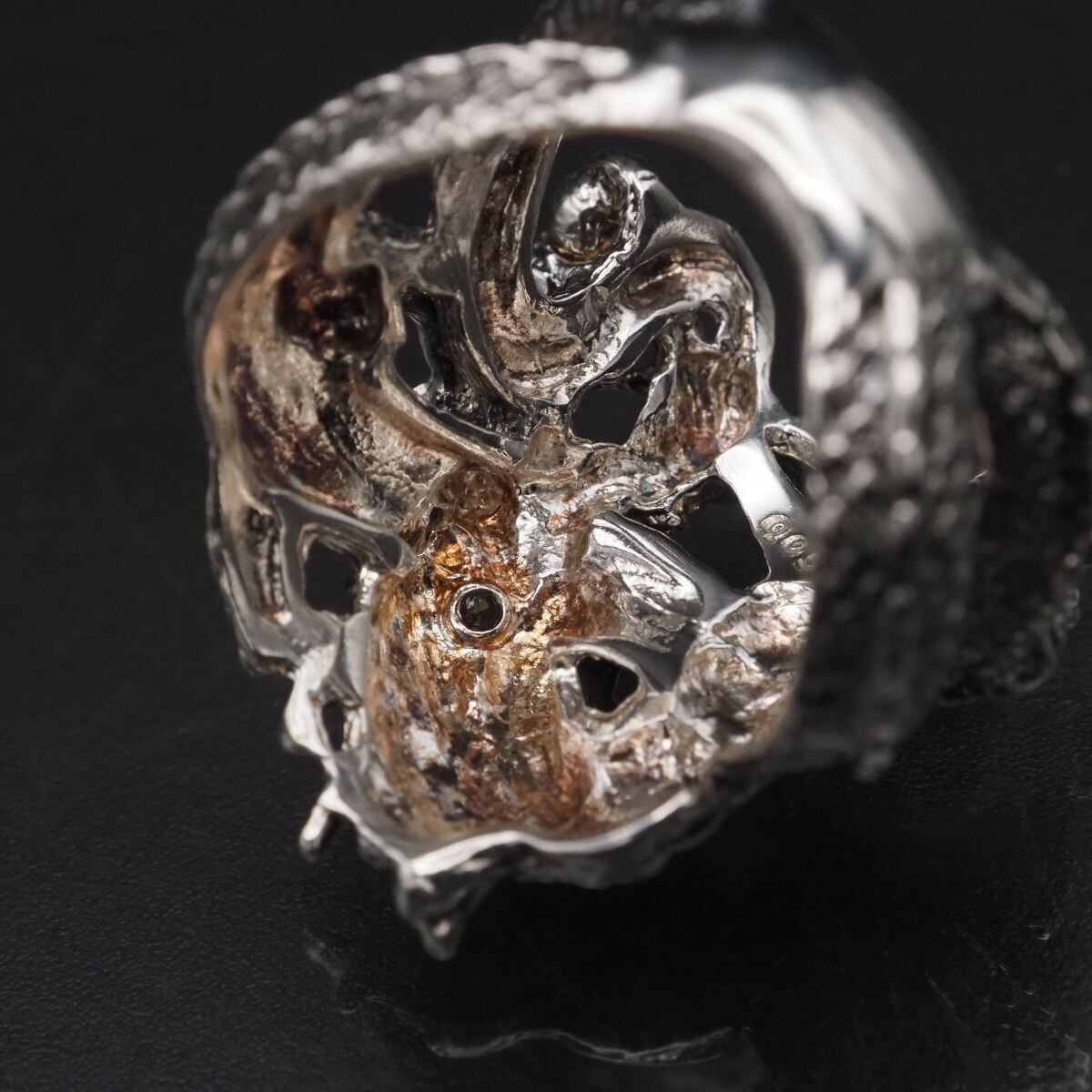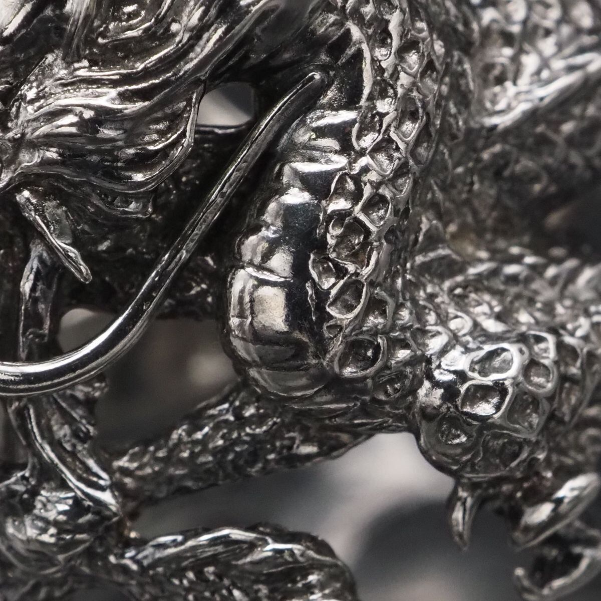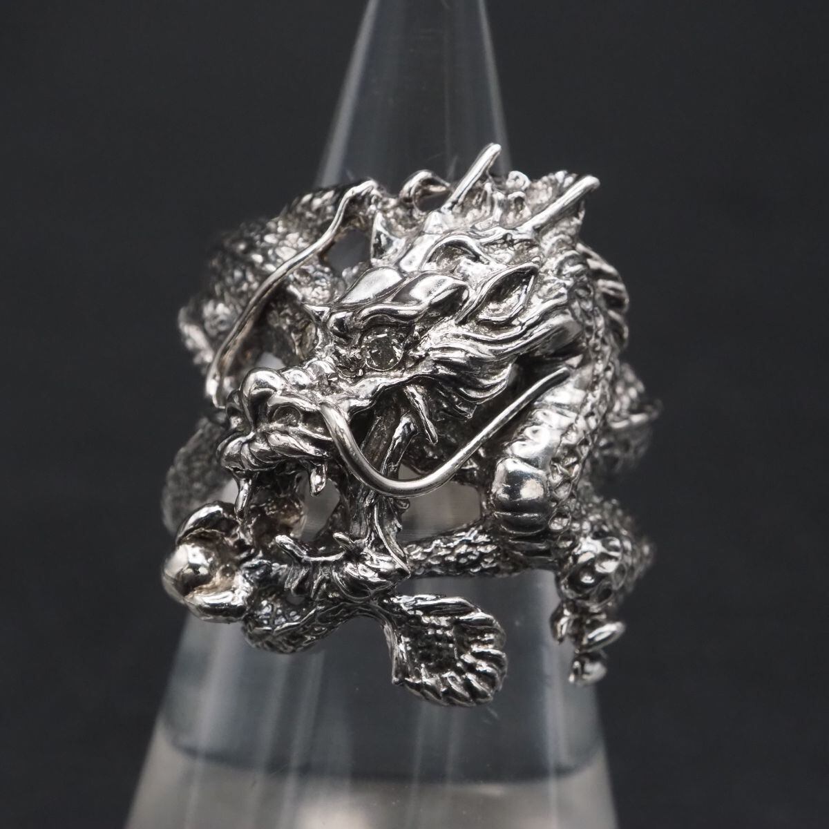 F834 ダイヤモンド 0.05ct SILVER刻印 リング 大ぶり 龍 ドラゴン デザイン シルバー 指輪 4月誕生石 16号