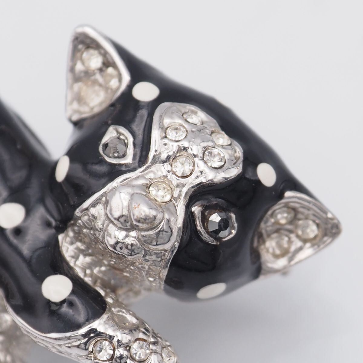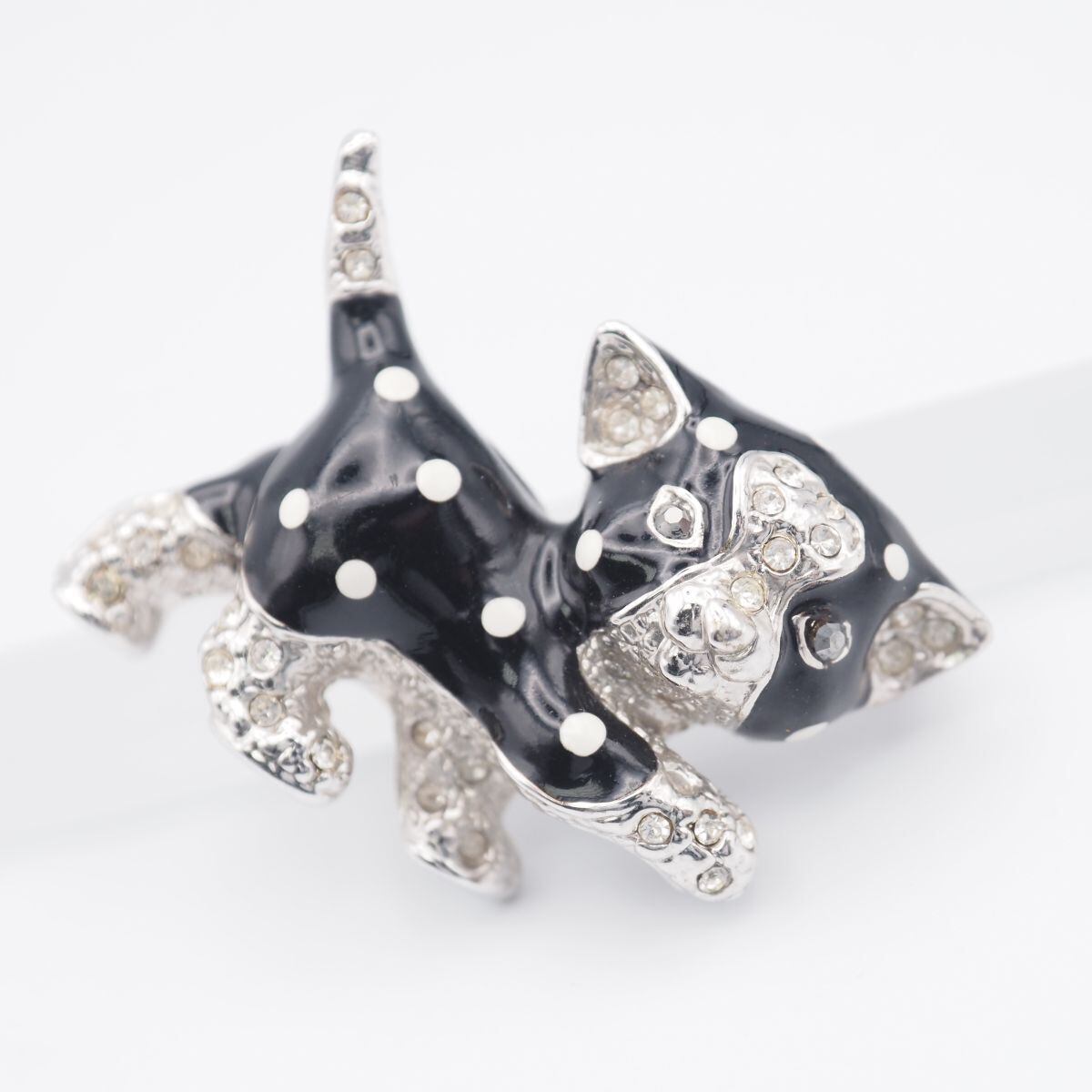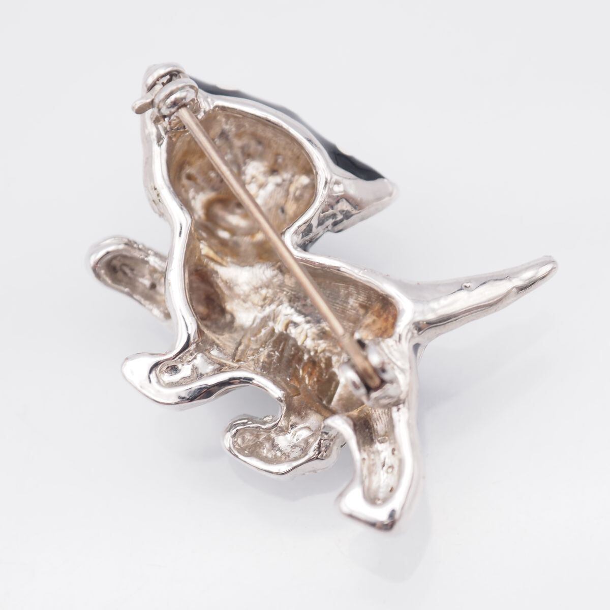 F584 ブローチ 猫 キャット ラインストーン ブラック ホワイト エナメル デザイン シルバー コスチュームジュエリー