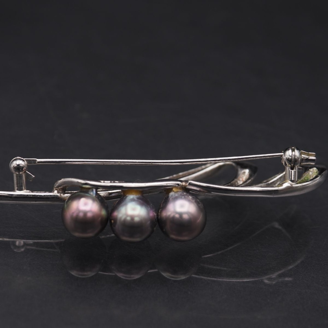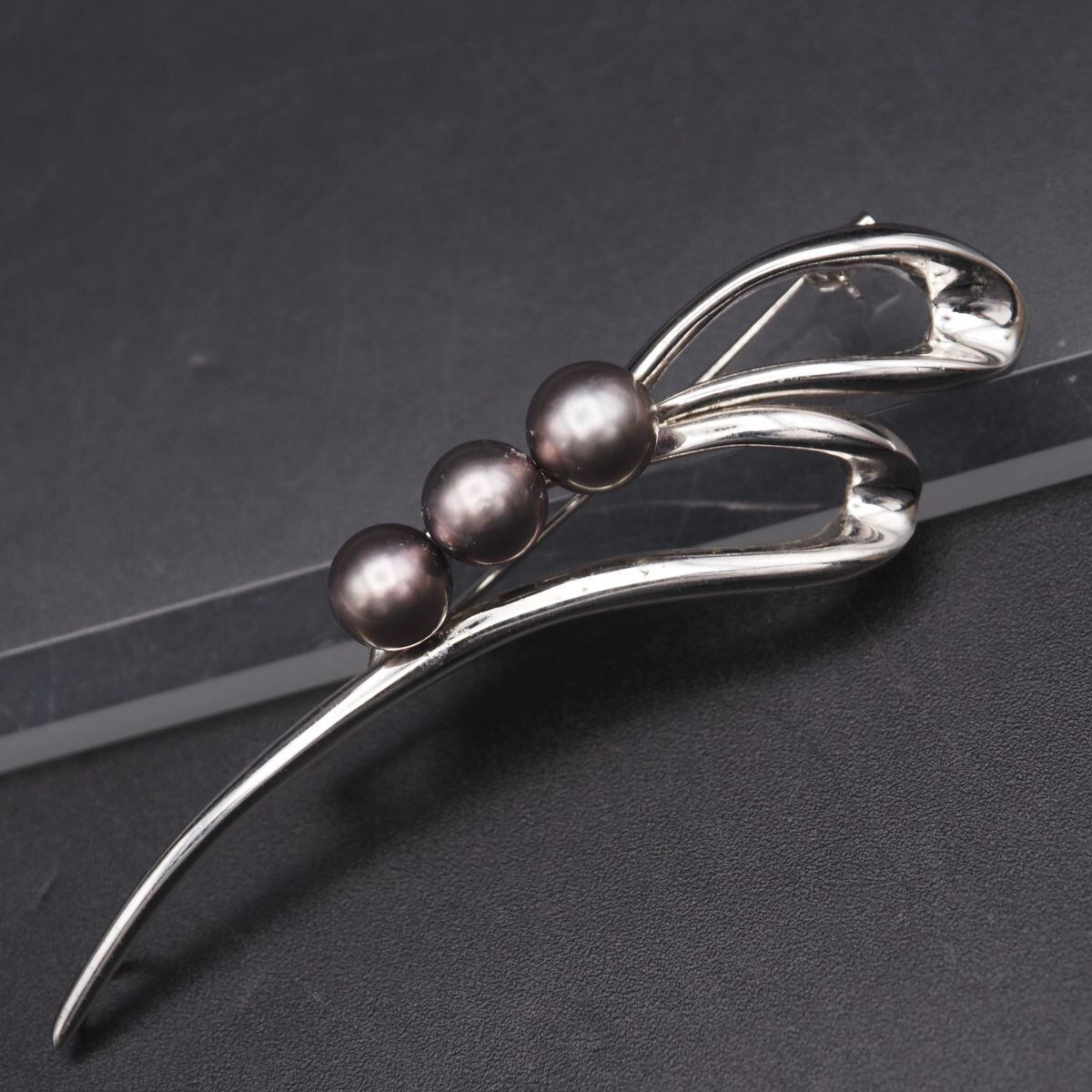 B762 黒蝶真珠 パール SILVER刻印 ブローチ デザイン シルバー コサージュ 6月誕生石