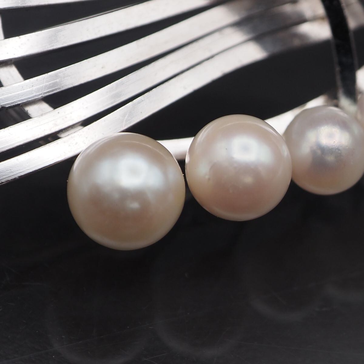 C007 本真珠 4.8~7.6mm9珠 パール SILVER刻印 ブローチ デザイン シルバー コサージュ 6月誕生石
