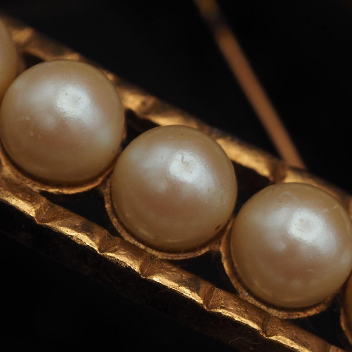 C348 ブローチ 大ぶり フェイクパール ゴールド デザイン コスチュームジュエリー