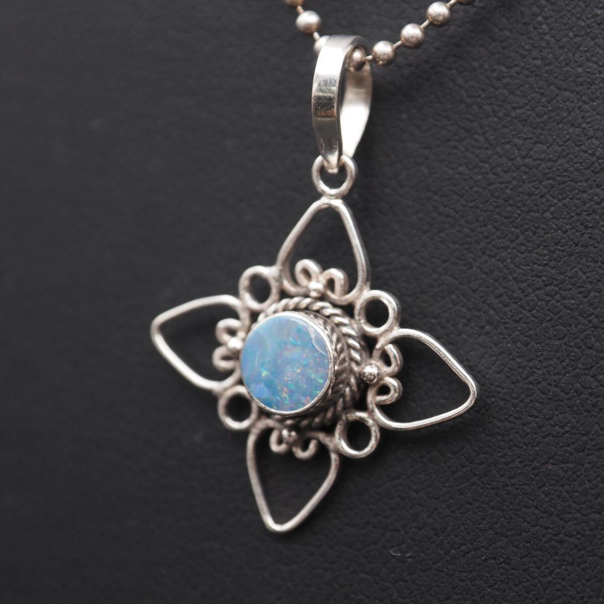 C232 オパール風 925刻印 ペンダント トップ インレイ デザイン シルバー チャーム ヘッド ヴィンテージ