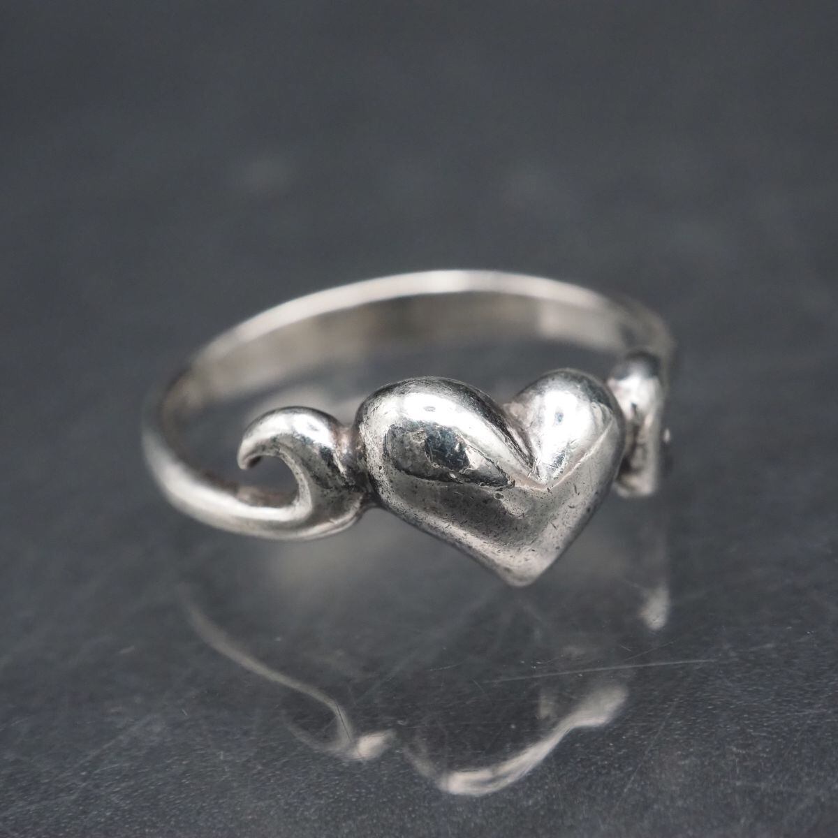 C566 ヴィンテージ SILVER刻印 リング ハート デザイン シルバー 指輪 17号