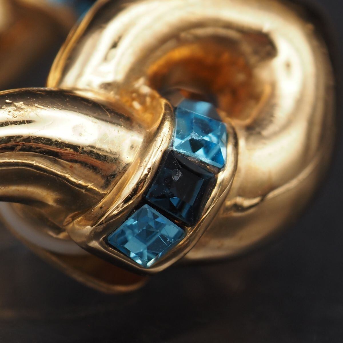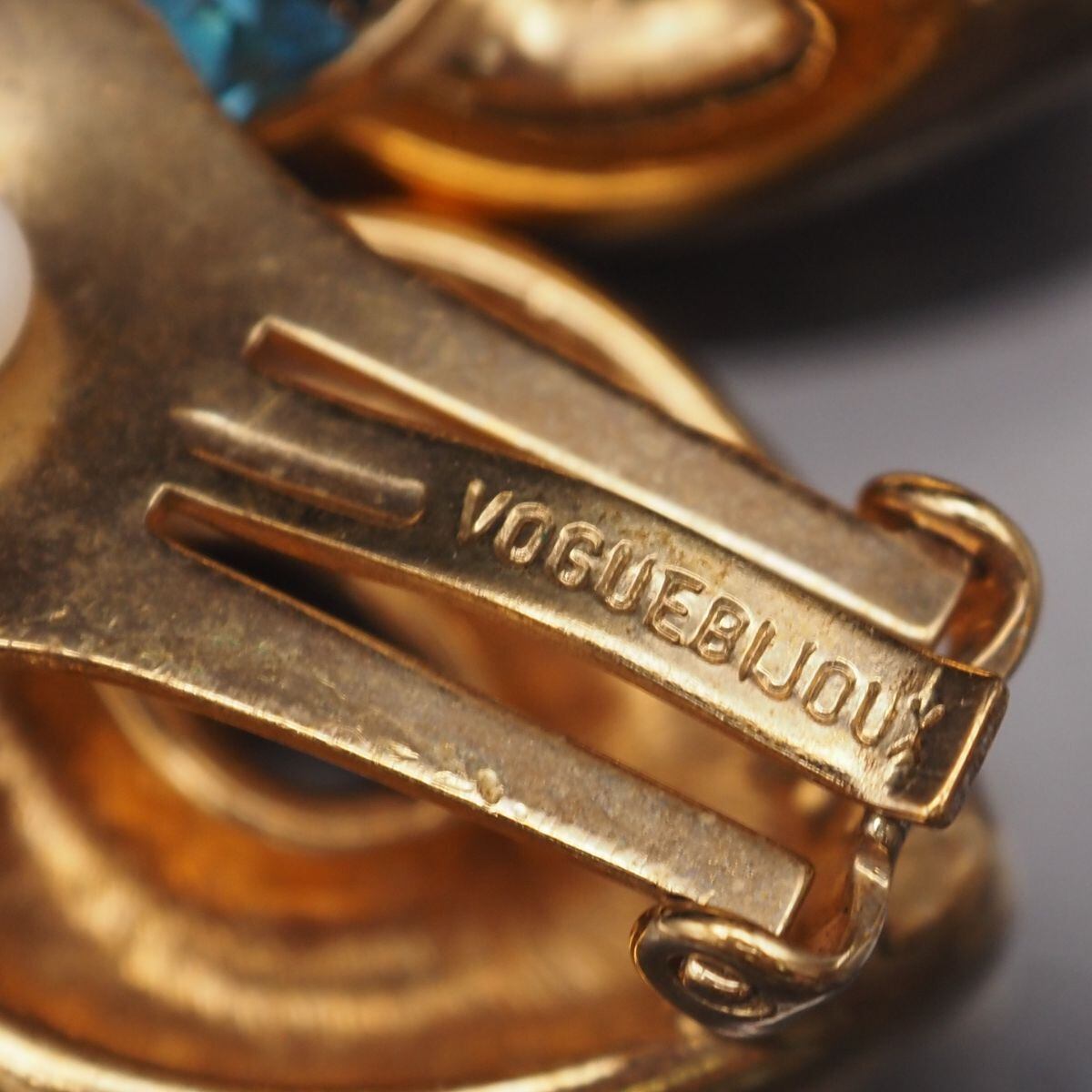 C474 イタリア ヴィンテージ VOGUE BIJOUX ヴォーグビジュ イヤリング ブルーストーン風 ゴールド デザイン
