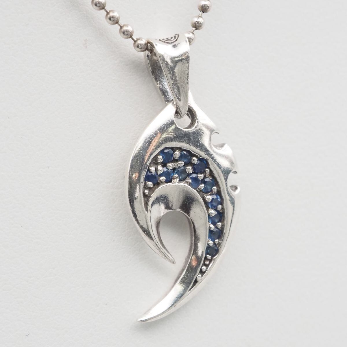 C907 Maori Warriors マリオウォリアーズ 925刻印 ペンダント トップ ブルーストーン フィッシュフック デザイン シルバー チャーム ヘッド