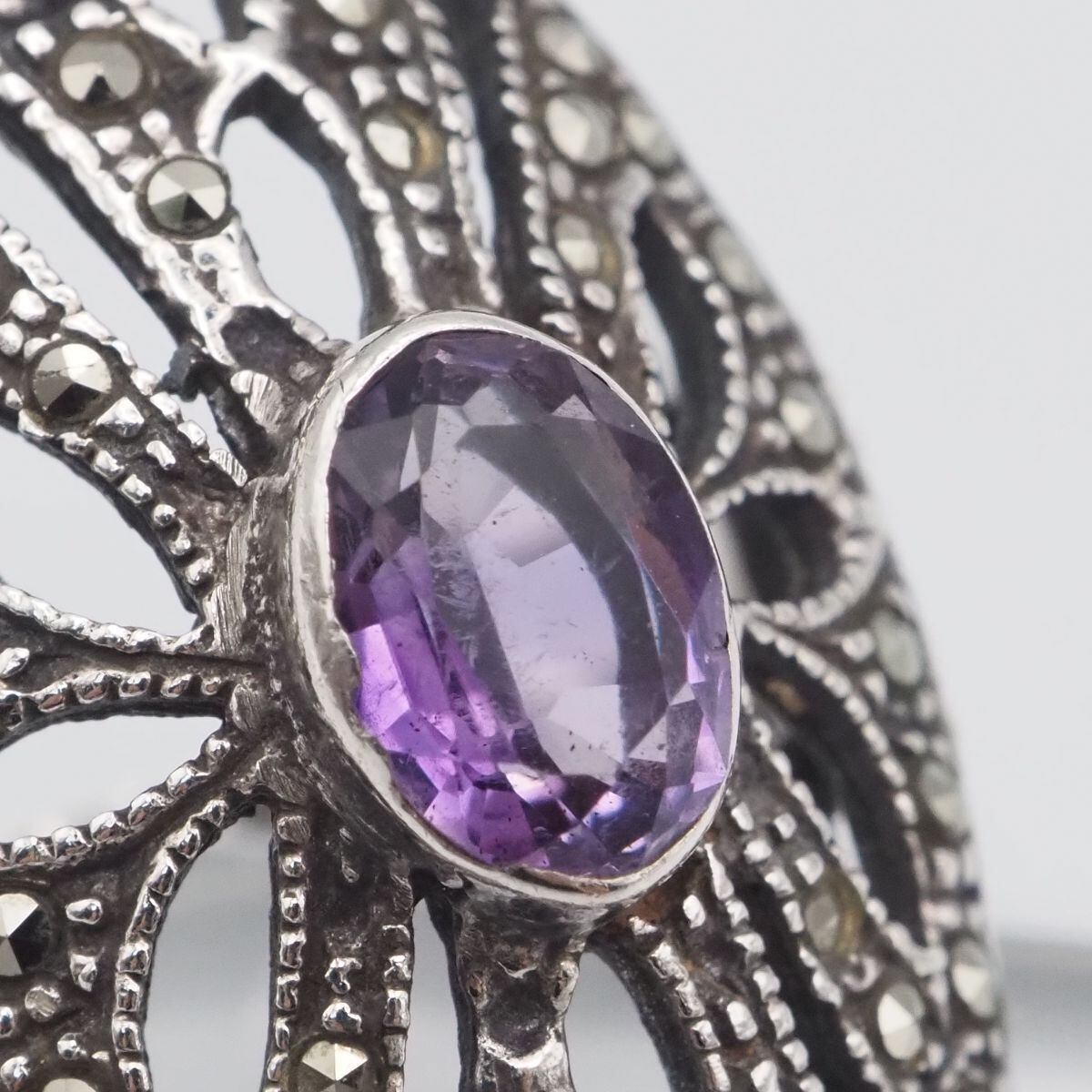 C836 アメジスト マーカサイト マルカジット リング 透かし彫り デザイン シルバー 指輪 ヴィンテージ 2月誕生石 11号