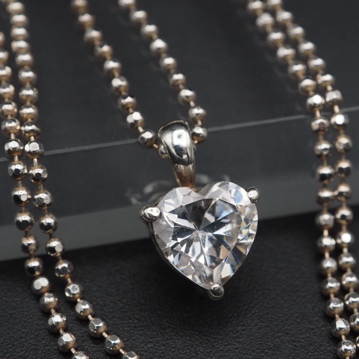 C804 ダイヤモンド風 STERLING SILVER925刻印 ペンダント ネックレス ハート デザイン シルバー