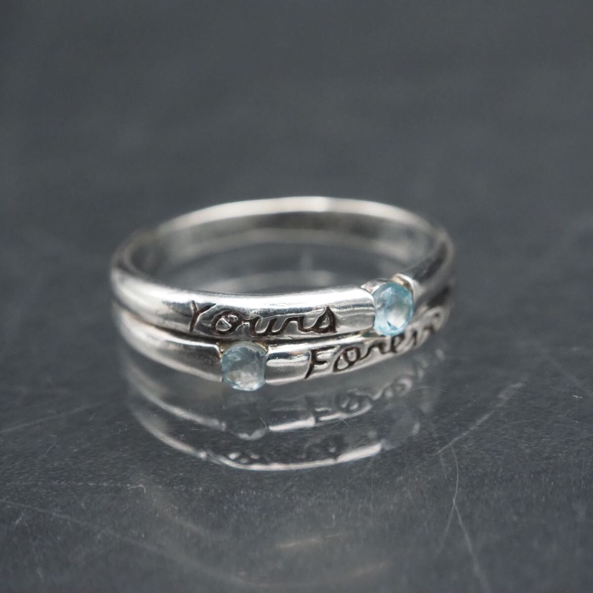 F235 ブルートパーズ アクアマリン SILVER刻印 リング メッセージ デザイン シルバー 指輪 3月 11月誕生石 11号