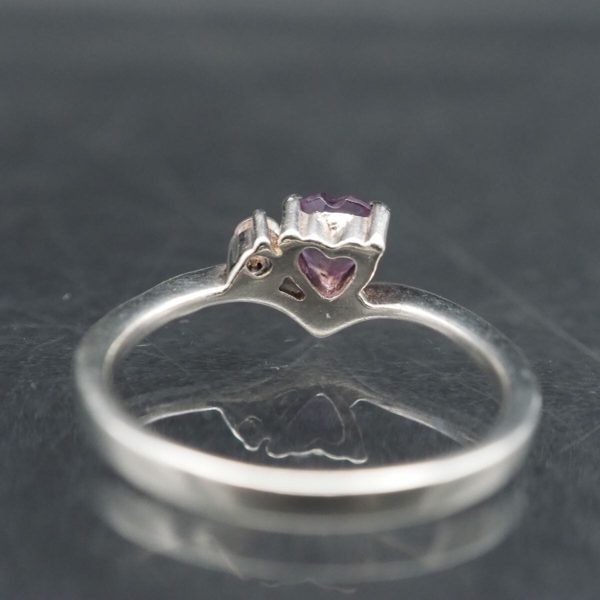 C851 アメジスト ダイヤモンド風 925刻印 リング ハート デザイン シルバー 指輪 2月誕生石 9号