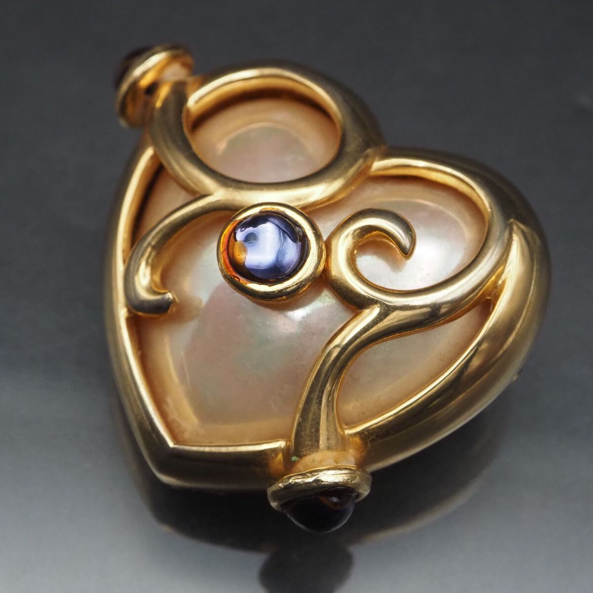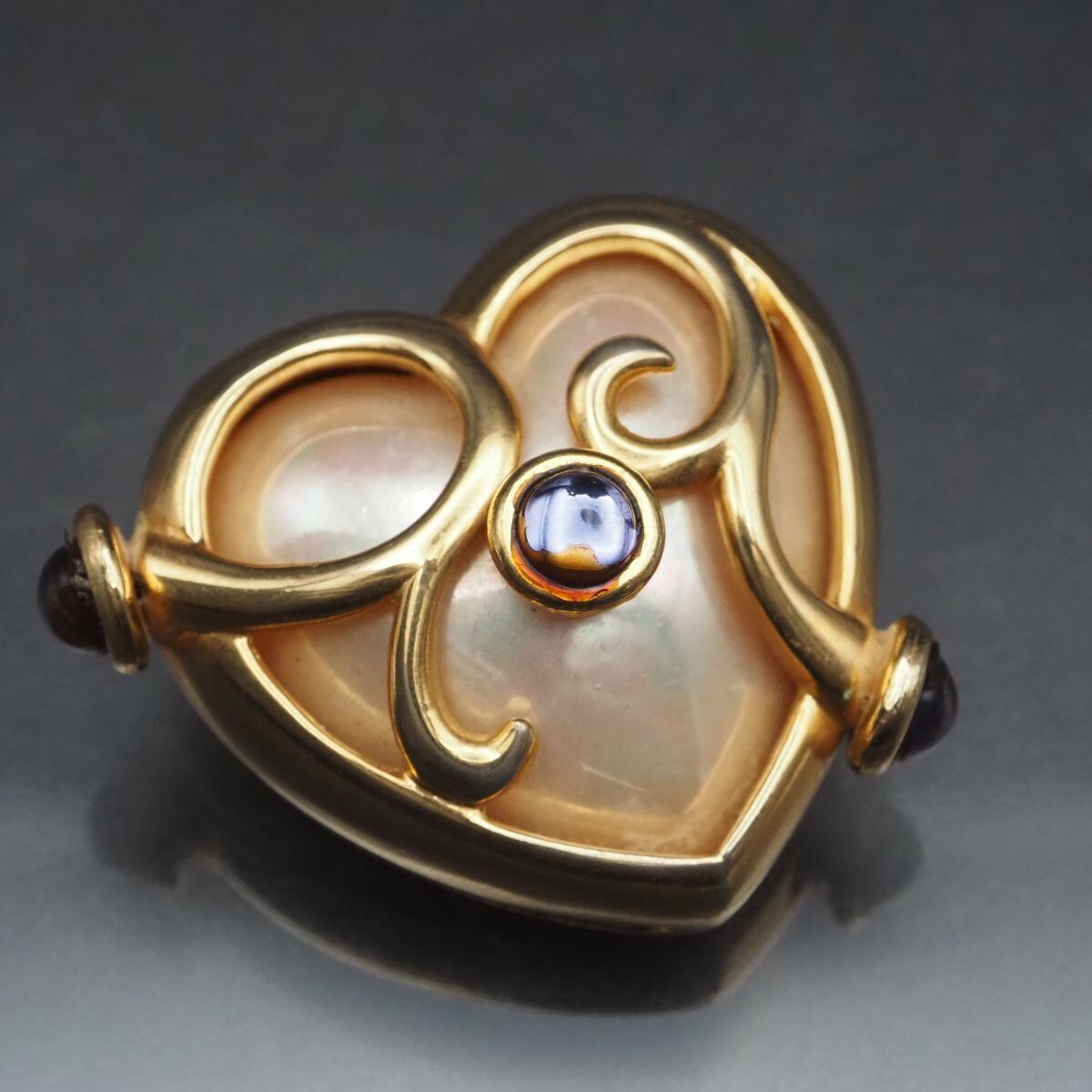 F237 CRAFT クラフト ブローチ ハート アメジスト風 フェイクパール ゴールド デザイン