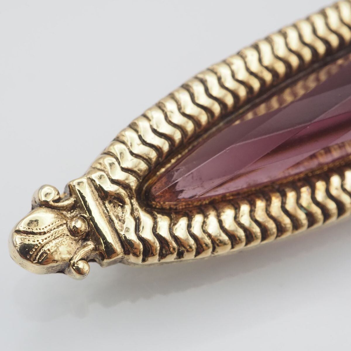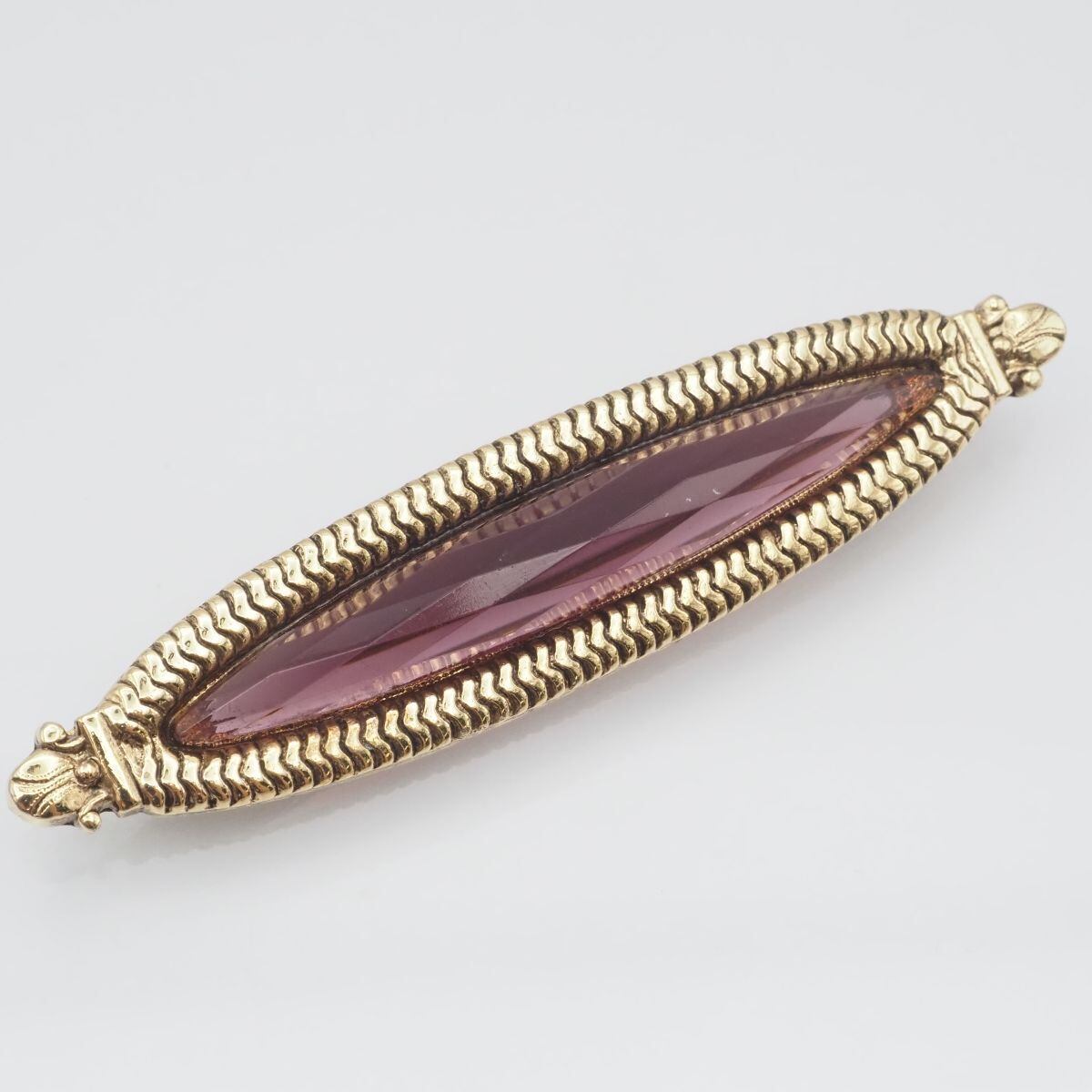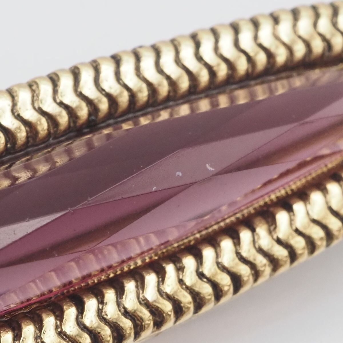F214 ブローチ 大ぶり パープルガラス ゴールド デザイン コスチュームジュエリー