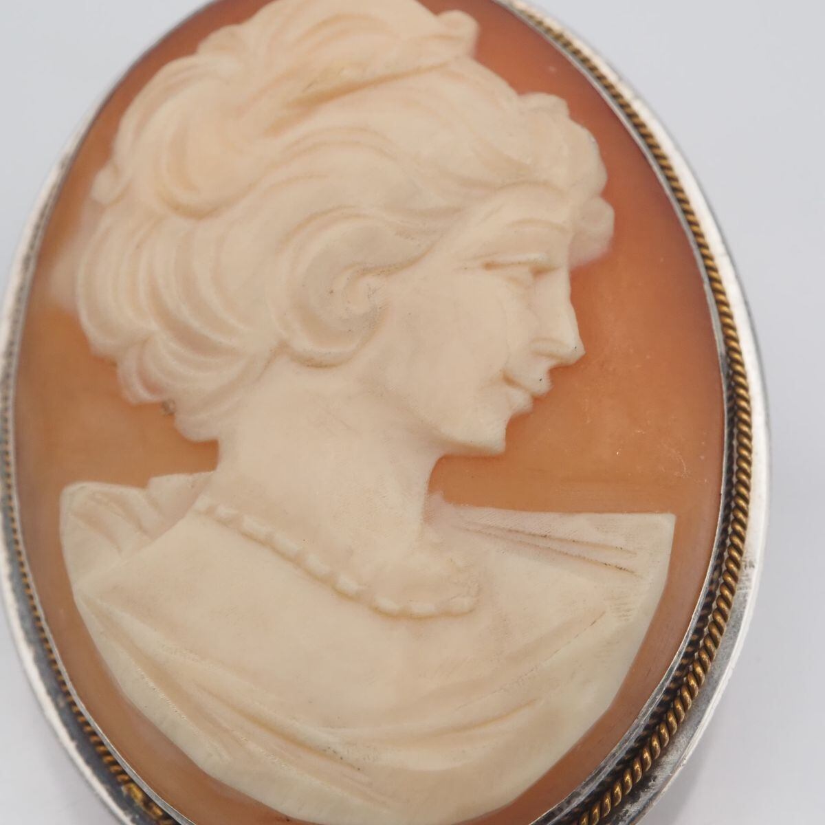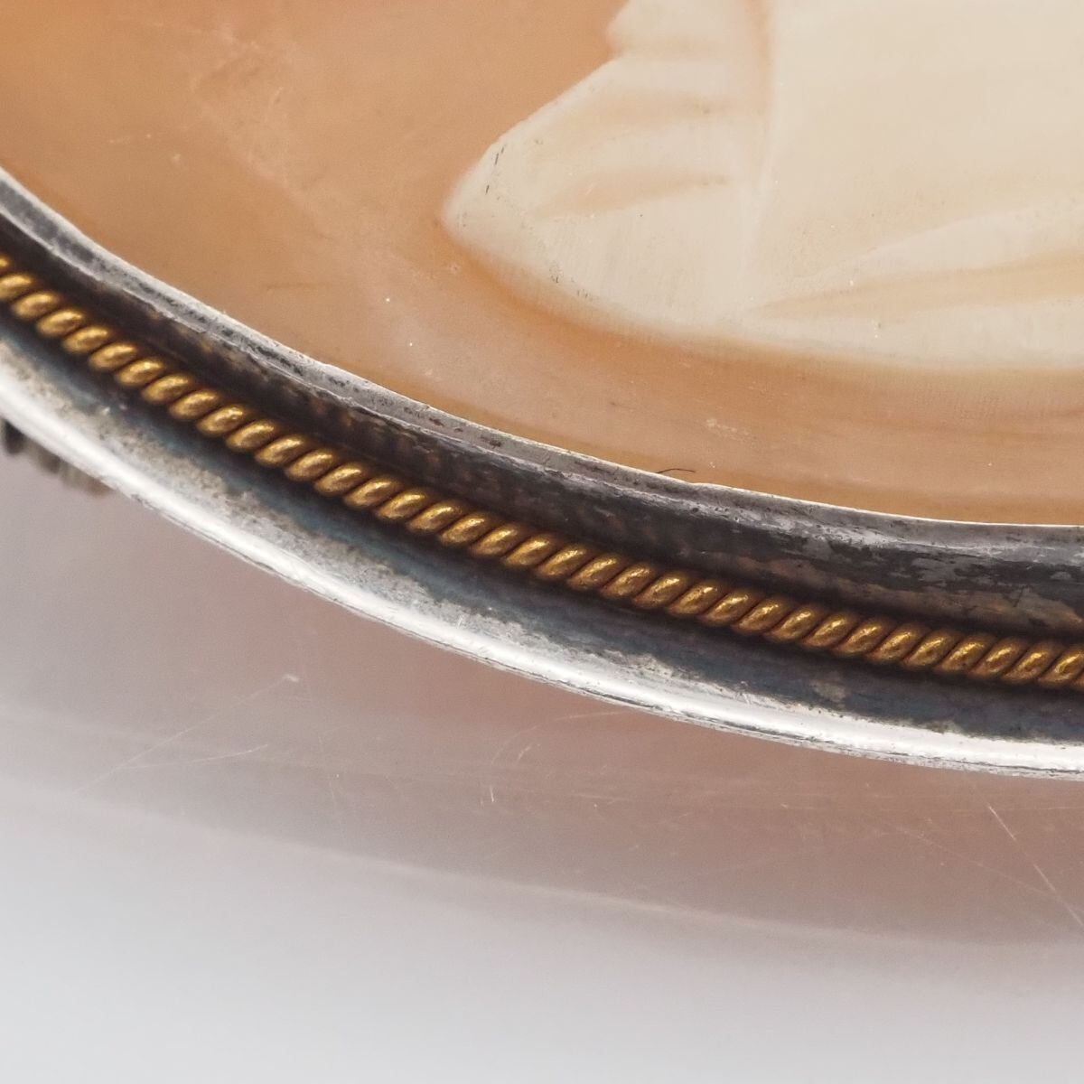 F253 シェルカメオ 800刻印 ブローチ 女性横顔 デザイン シルバー ヴィンテージ