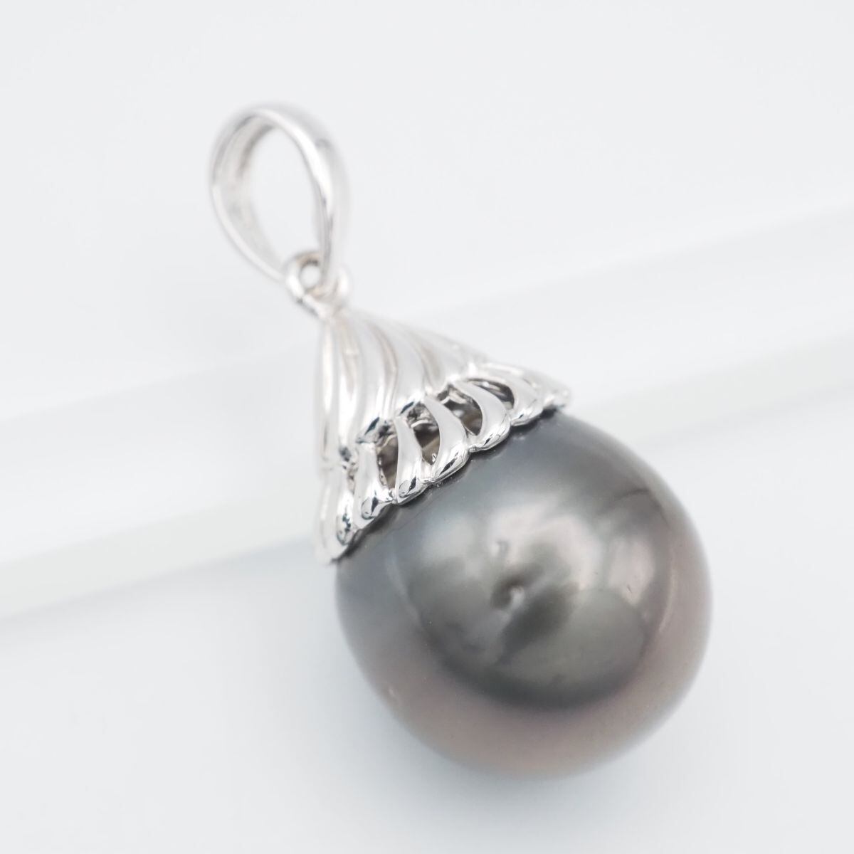 F461 黒蝶真珠 パール SV刻印 ペンダント トップ シルバー デザイン チャーム ヘッド 6月誕生石