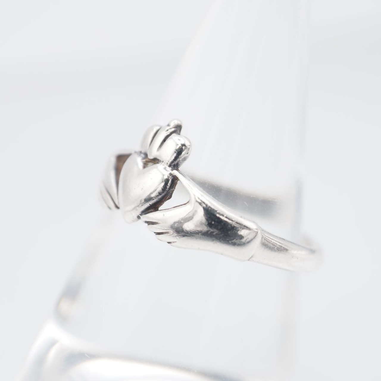 C725 ヴィンテージ SILVER刻印 リング ハート ハンド デザイン シルバー 指輪 14号