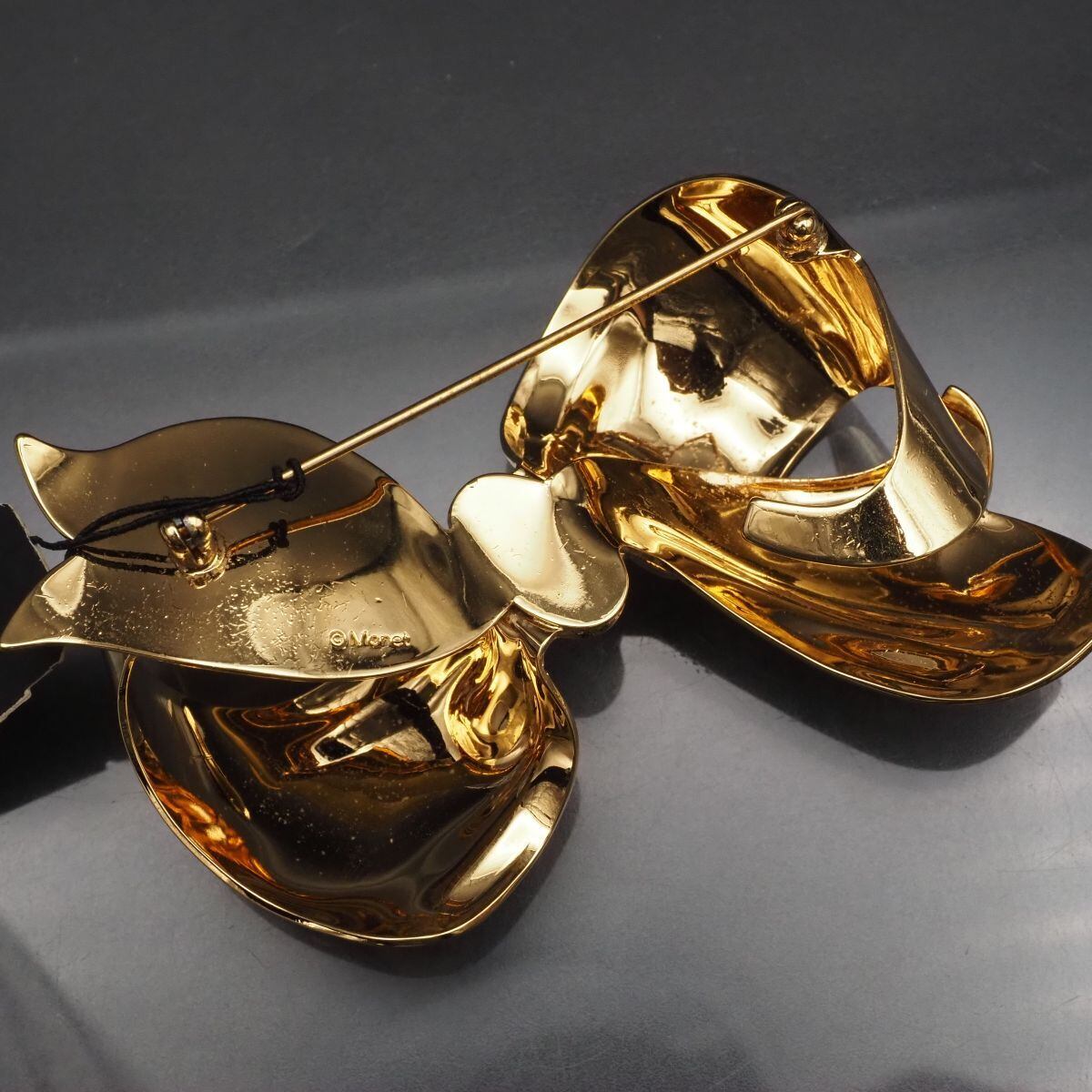 F068 MONET モネ ブローチ 大ぶり リボン ゴールド デザイン
