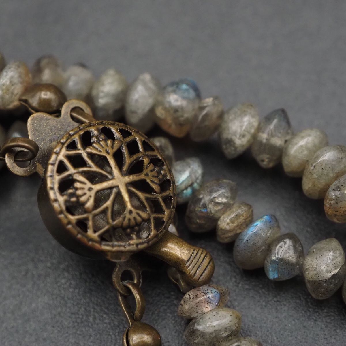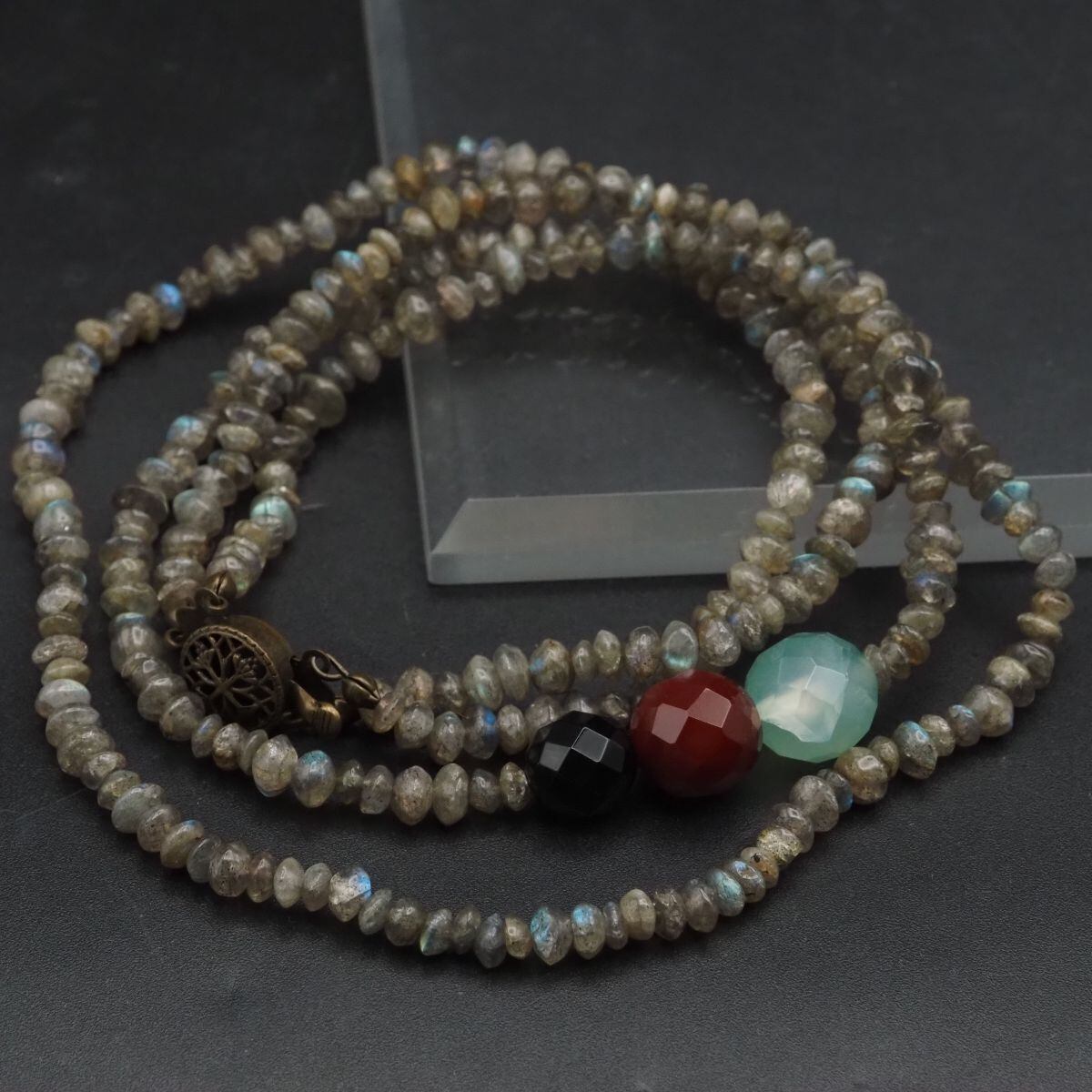 F432 カラーストーン オニキス ラブラドライト ネックレス 2連 デザイン シルバー