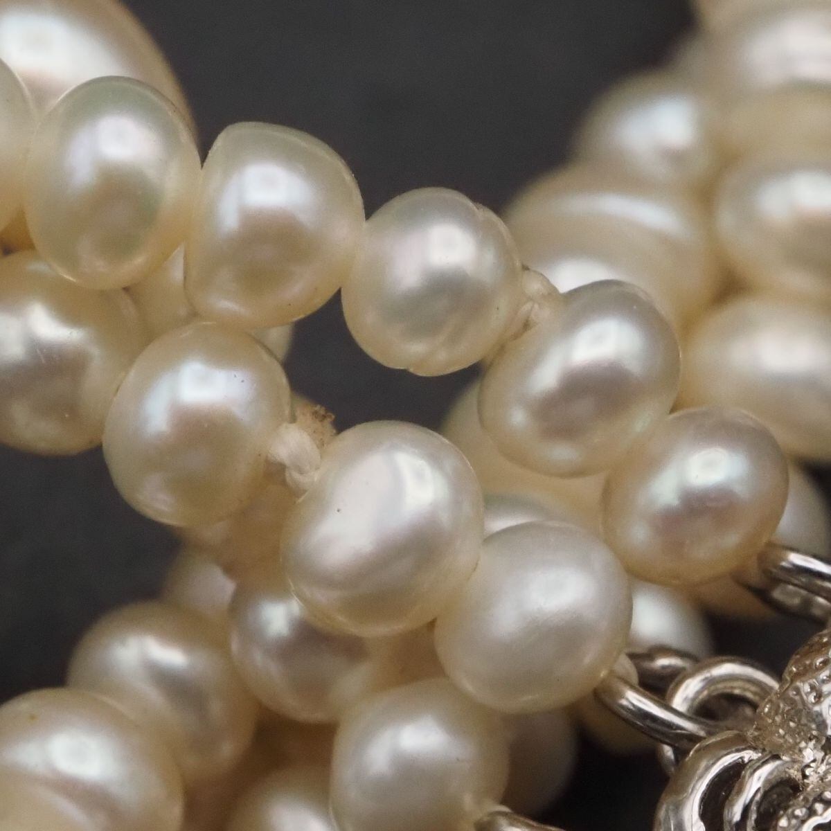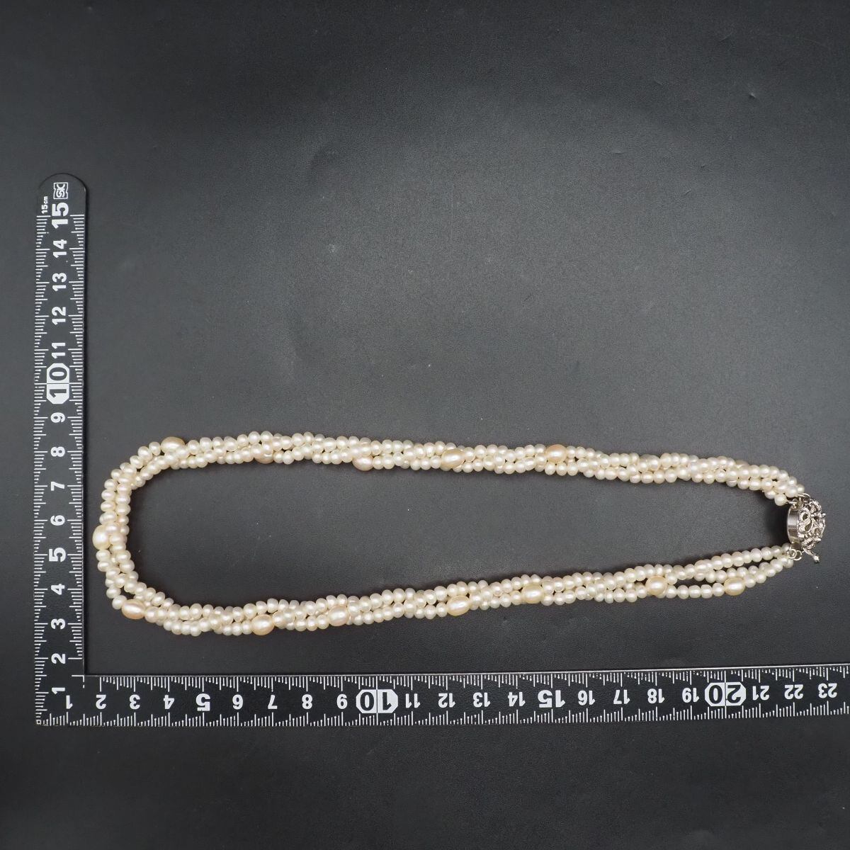 F666 淡水真珠 パール SILVER刻印 ネックレス 3連 デザイン シルバー 6月誕生石