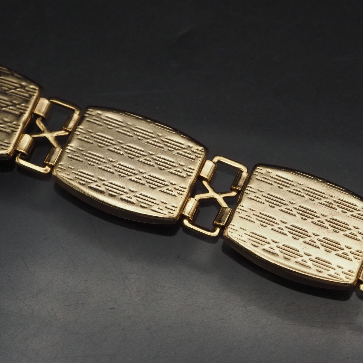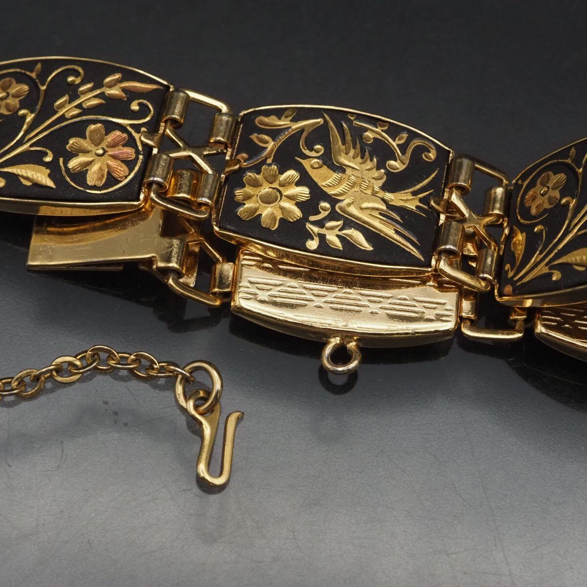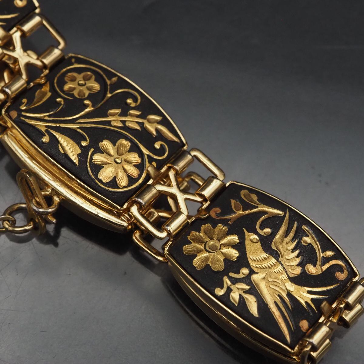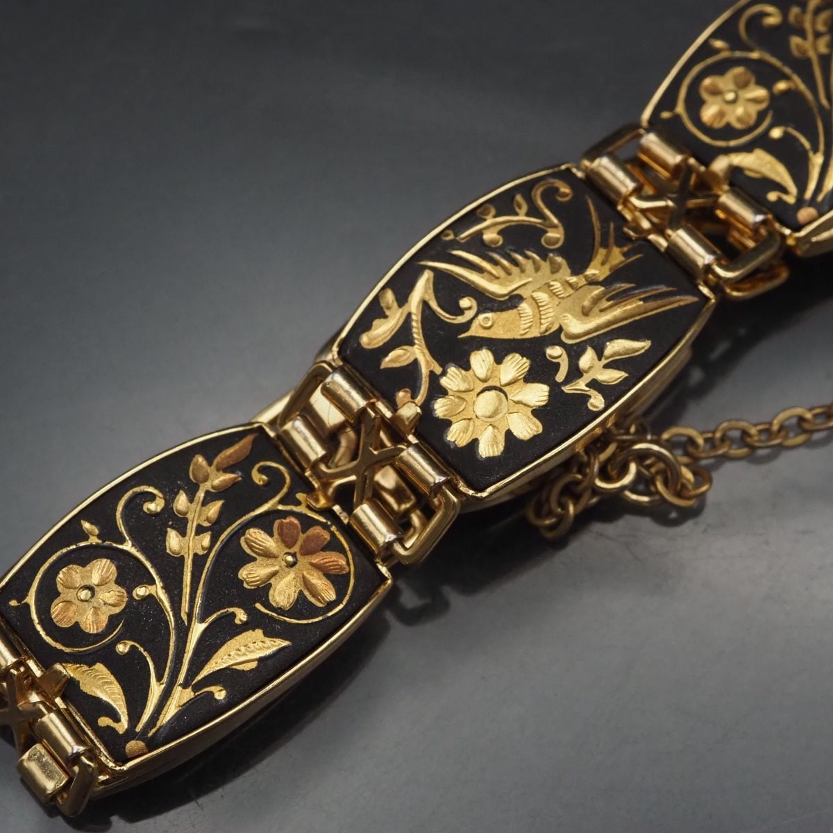 F389 金工 象嵌 e!刻印 ブレスレット 鳥花柄 ゴールド デザイン