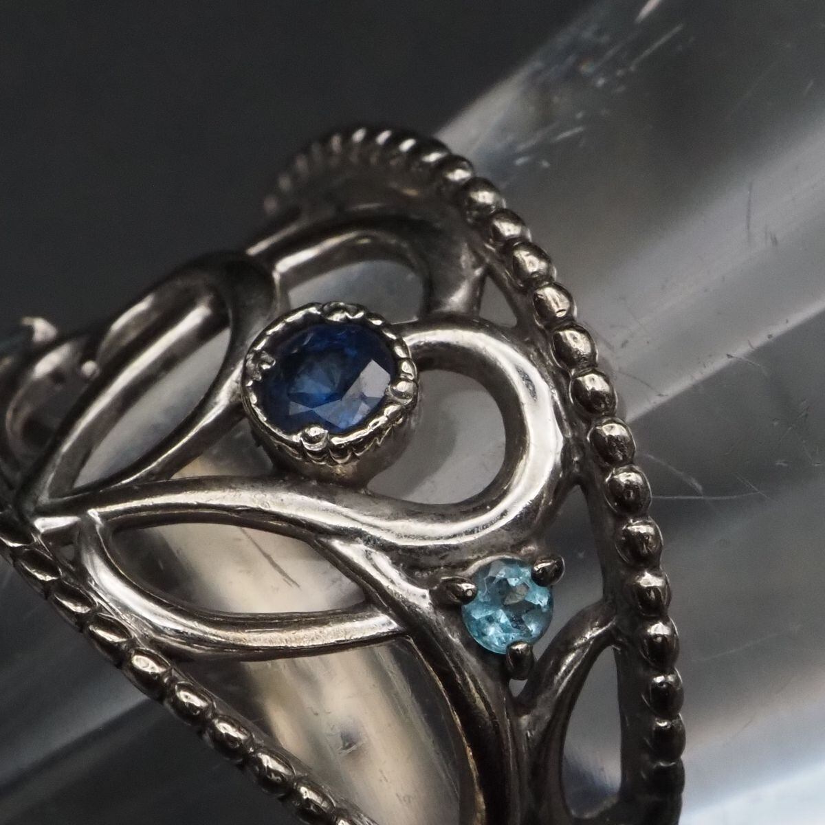 F356 サファイア? ブルースピネル? ブルートパーズ SV刻印 リング 透かし彫り デザイン シルバー 指輪 11月誕生石 12-13号