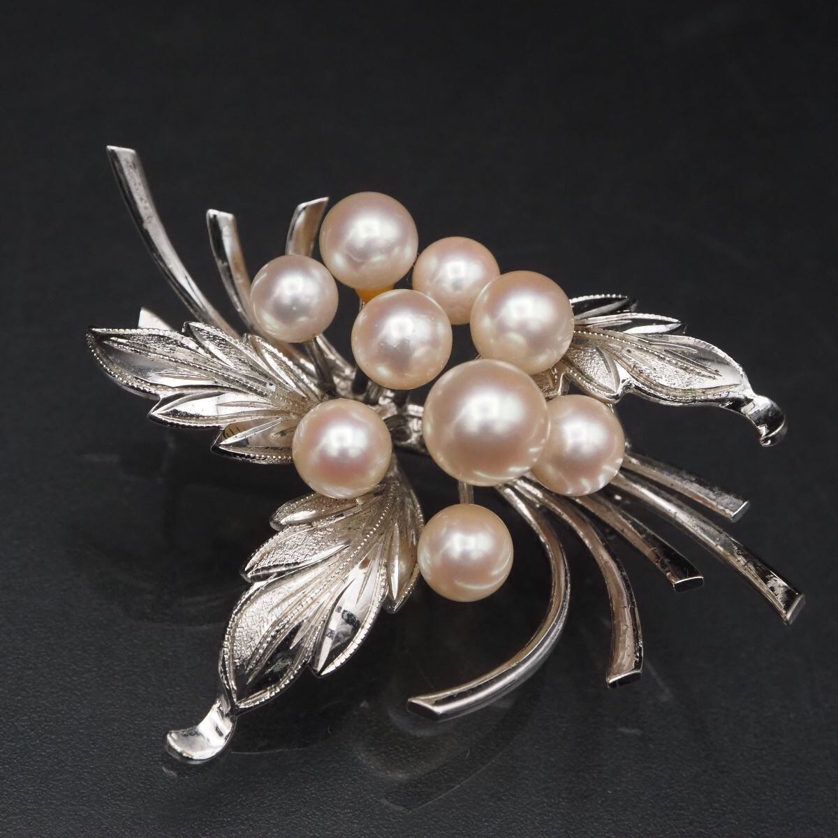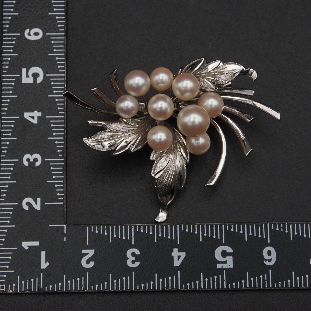 F610 本真珠 5.1-7.1mm9珠 パール STERLING刻印 ブローチ リーフ デザイン シルバー コサージュ 6月誕生石