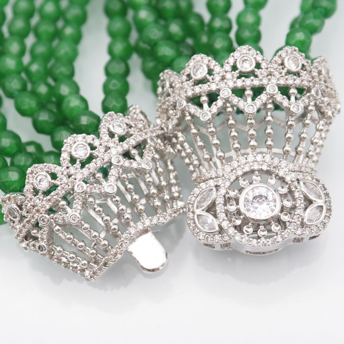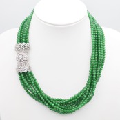 F866 グリーンストーン ダイヤモンド風 ネックレス 8連 デザイン シルバー