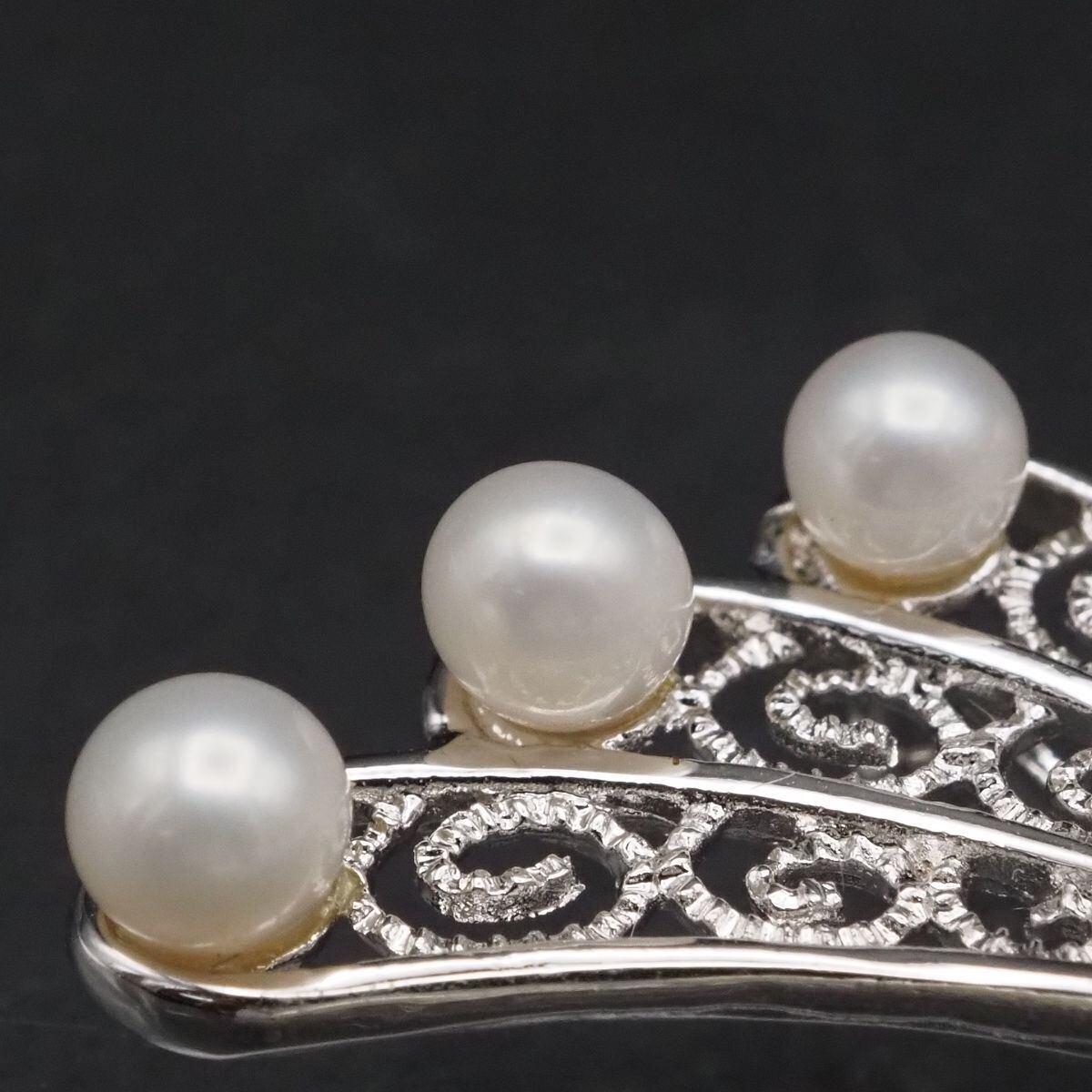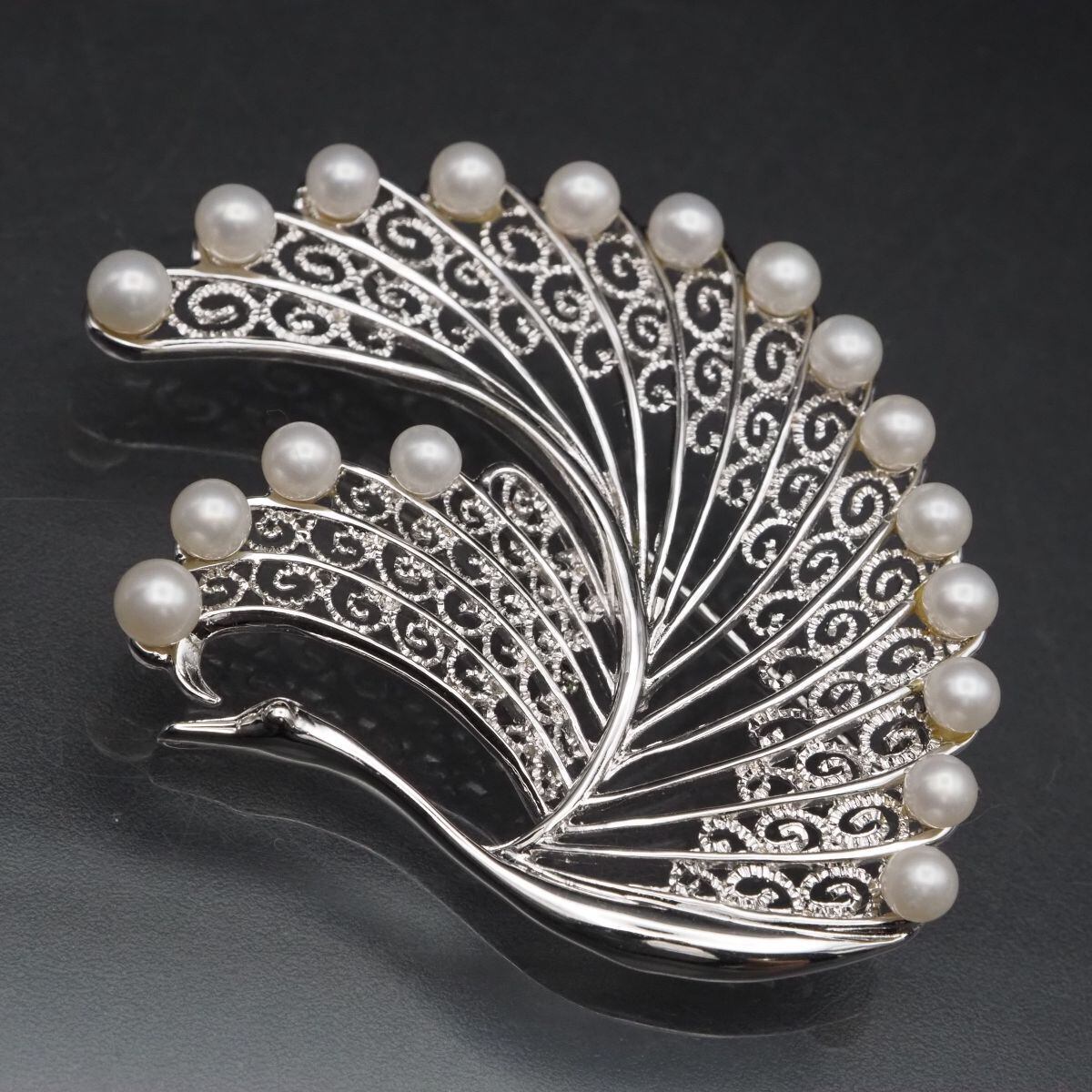 F886 淡水真珠 3.7-4.2mm18珠 パール SILVER刻印 ブローチ 銀線細工 フィリグリー 鶴 モチーフ デザイン シルバー コサージュ 6月誕生石