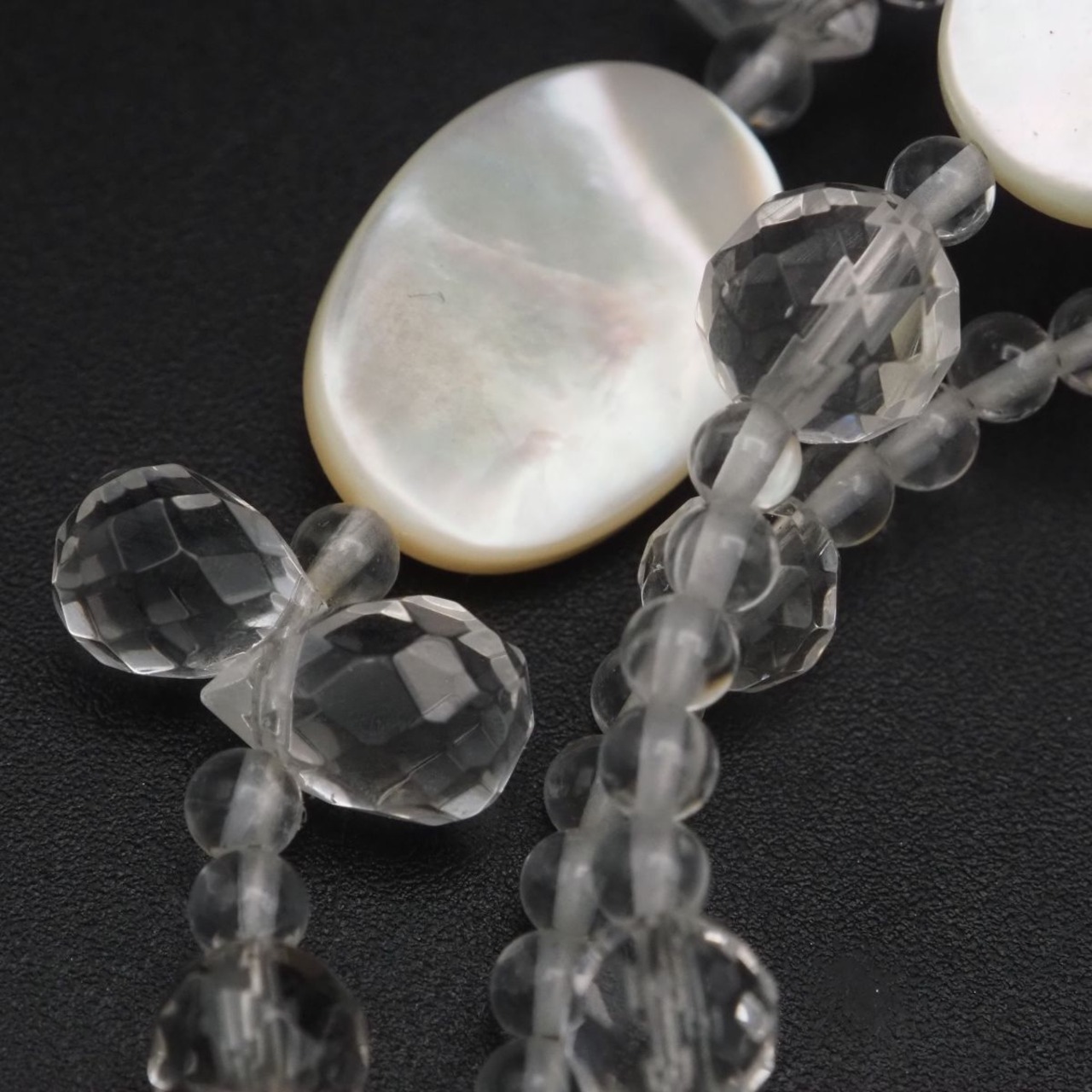 F789 シェル 水晶 925刻印 ネックレス デザインカット シルバー