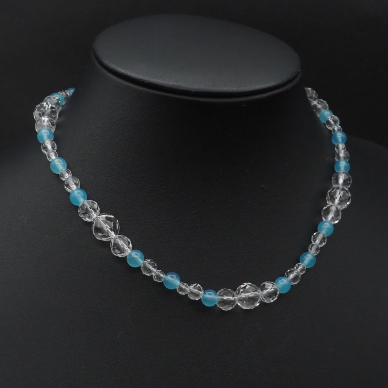 F752 水晶 ブルーストーン STERLING刻印 ネックレス デザインカット シルバー