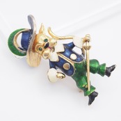 F338 ブローチ 猫剣士 キャット マルチカラー エナメル ゴールド デザイン コスチュームジュエリー