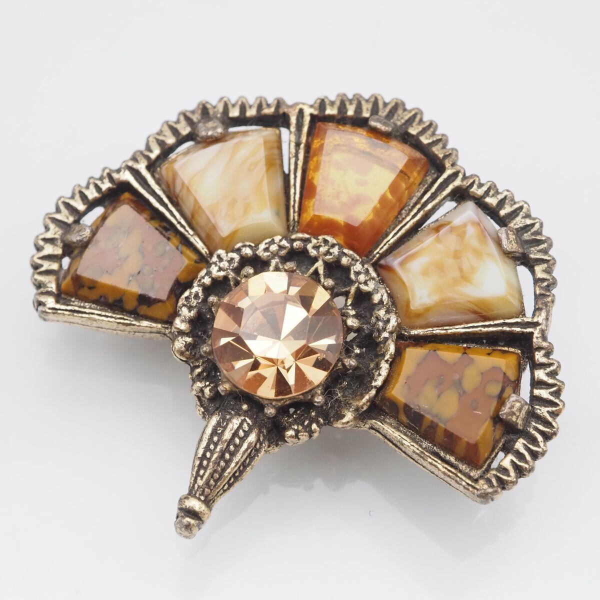 F874 イギリス ヴィンテージ MIRACLE ミラクル ブローチ 天然石風 ゴールド デザイン 英国 アンティーク