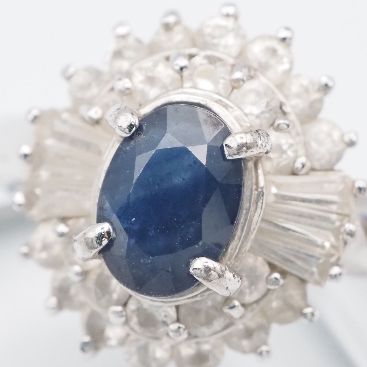 F863 サファイア? ブルースピネル? SV S100刻印 リング ラインストーン デザイン シルバー 指輪 14号