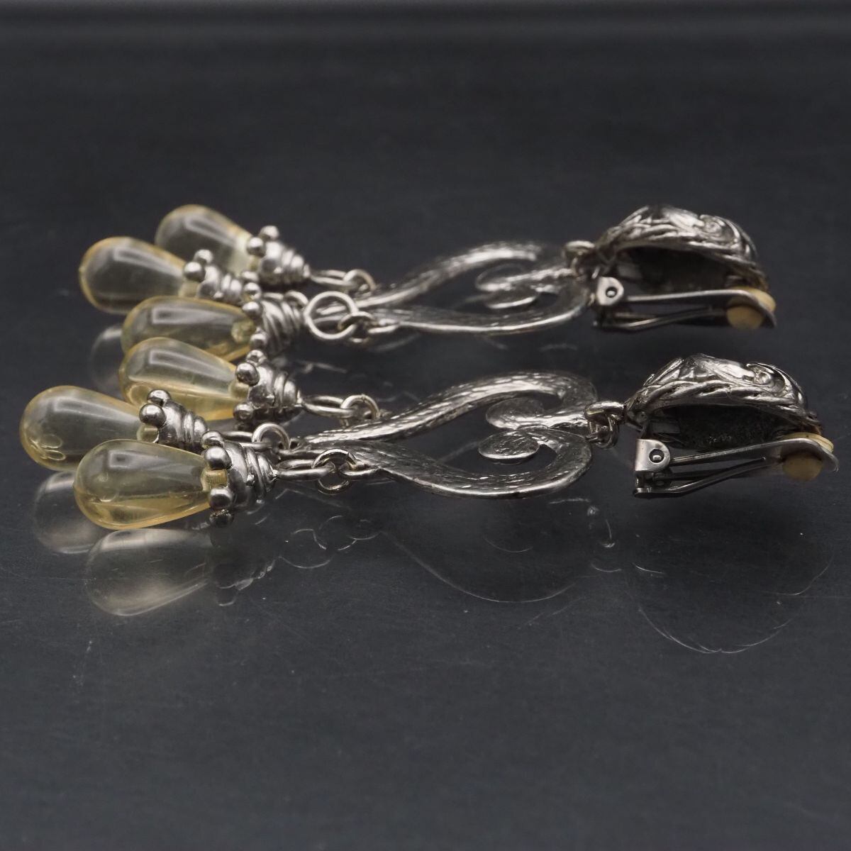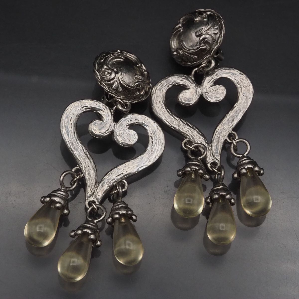 G120 イヤリング 大ぶり カラーストーン風 オープンハート スウィング デザイン シルバー コスチュームジュエリー