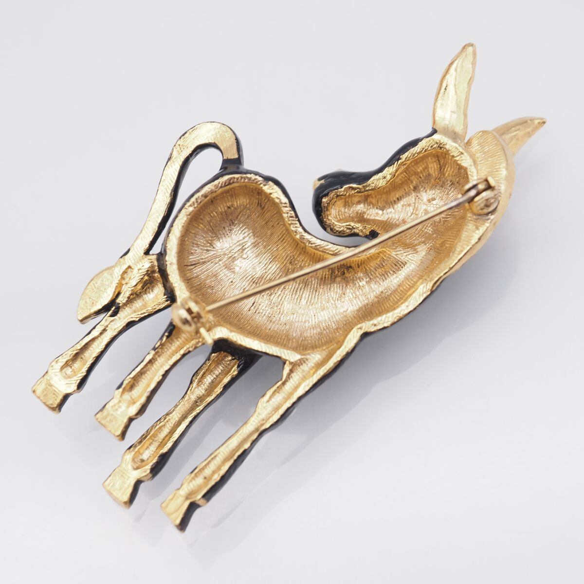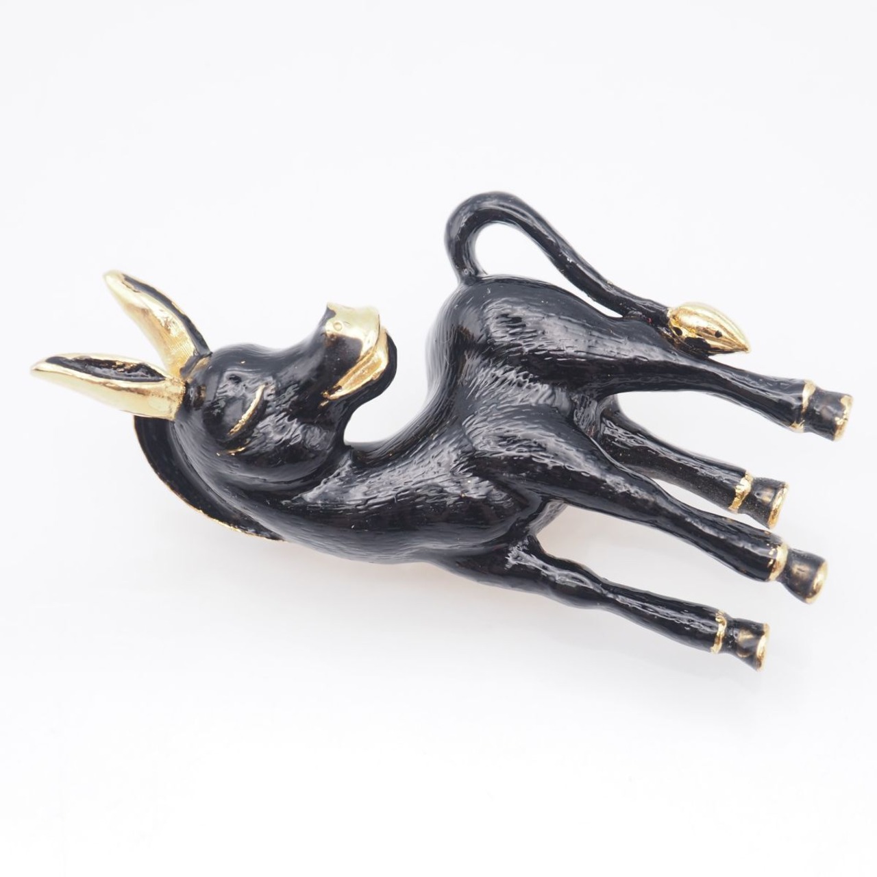 G189 ブローチ 大ぶり ロバ ドンキー ホース ブラックエナメル ゴールド デザイン コスチュームジュエリー