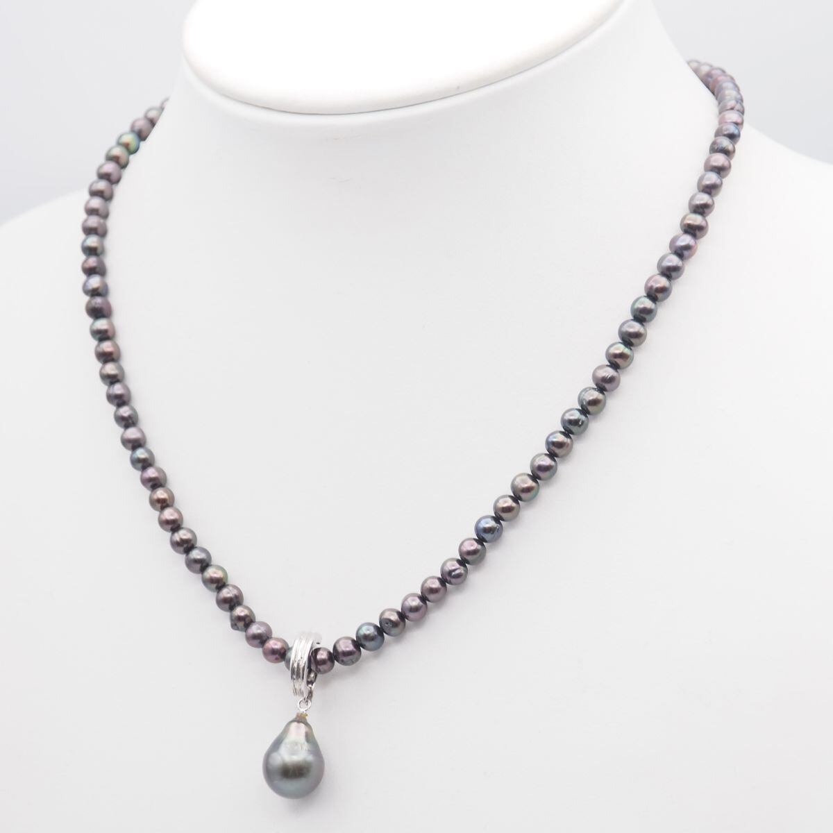 G048 黒蝶 淡水真珠 パール ペンダント ネックレス ピーコック系カラー デザイン シルバー 6月誕生石