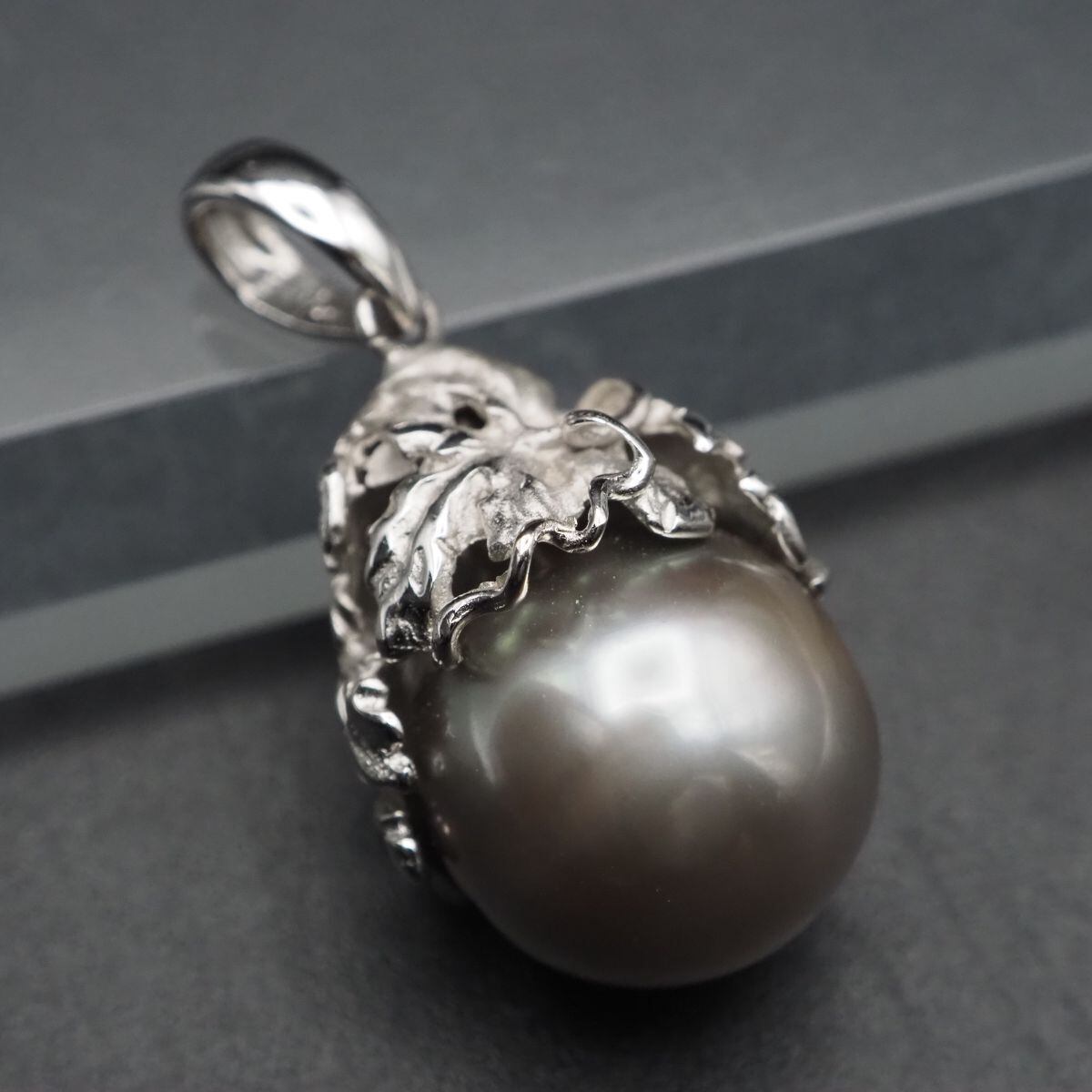 F918 黒蝶真珠 パール SILVER刻印 ペンダント トップ デザイン シルバー チャーム ヘッド 6月誕生石