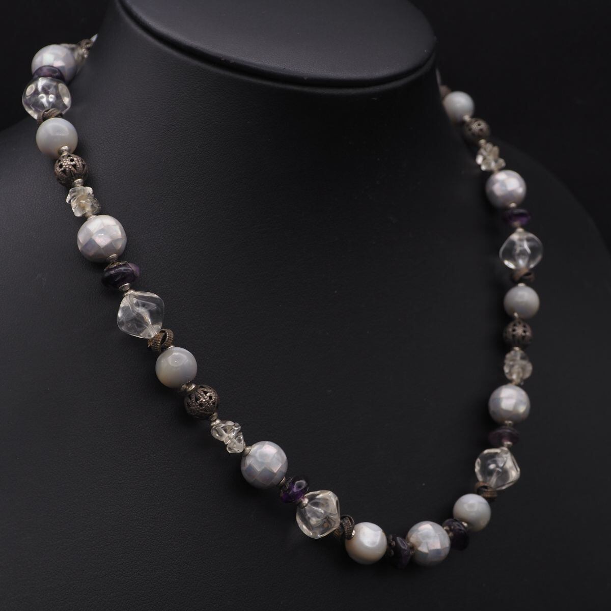 B852 ファブリス FABRICE ネックレス カラーストーン風 シェル アメジスト デザイン シルバー