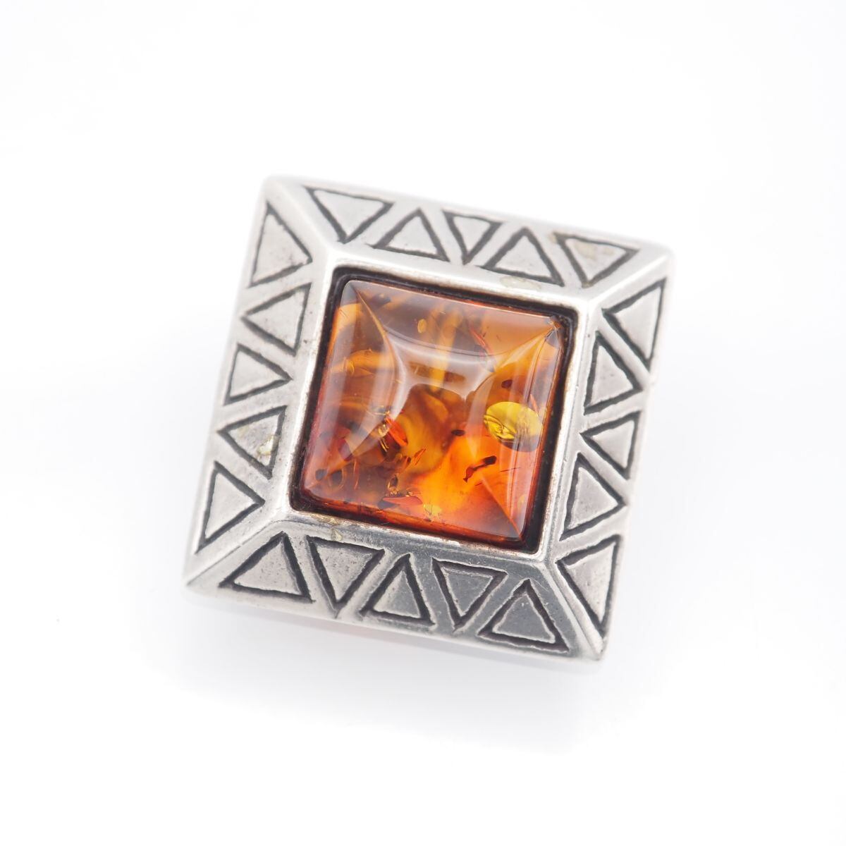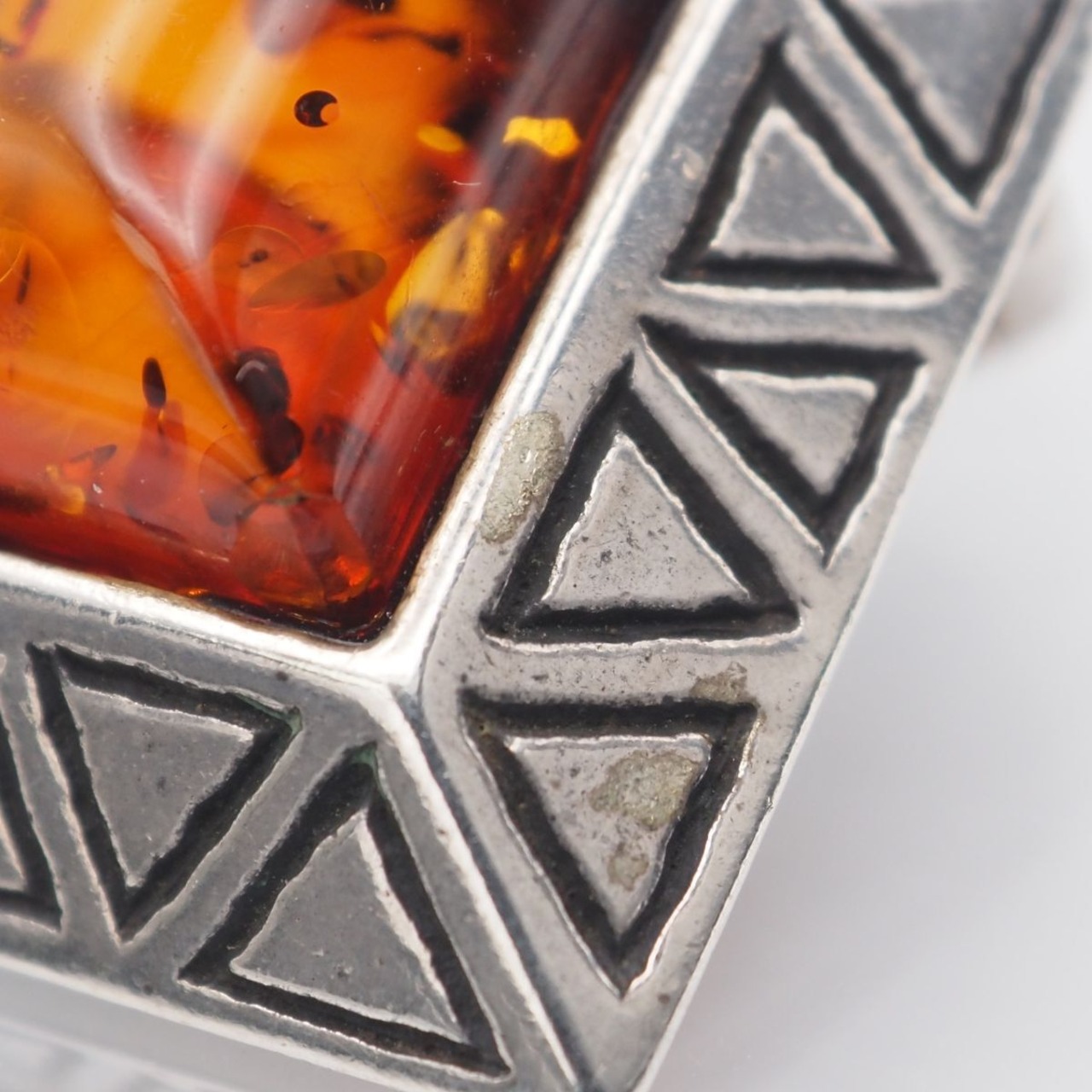 B740 琥珀 コハク 925刻印 イヤリング 片耳のみ デザイン シルバー