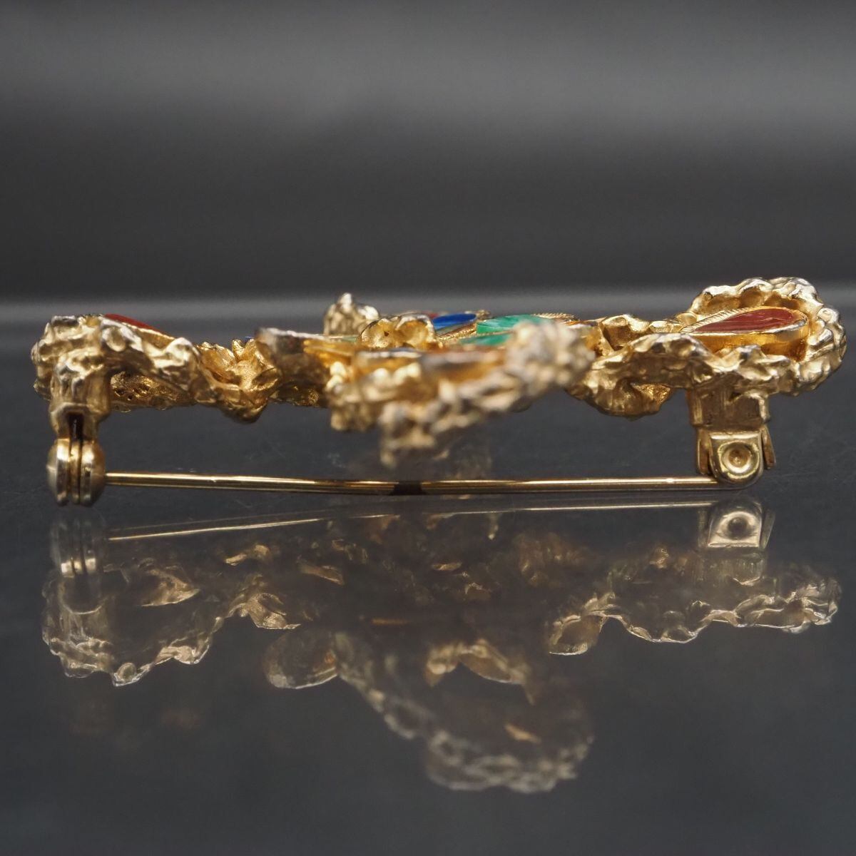 C164 WEST刻印 ブローチ カラーストーン風 マルチカラー ゴールド デザイン コスチュームジュエリー