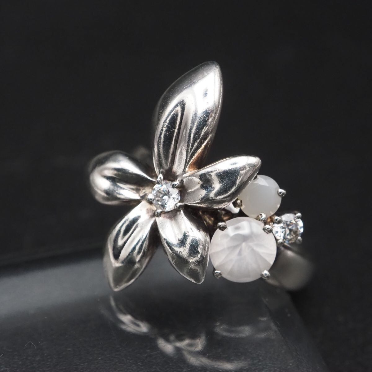 C560 4℃ ヨンドシー SILVER刻印 リング ダイヤモンド風 フラワー デザイン シルバー 指輪 9-10号