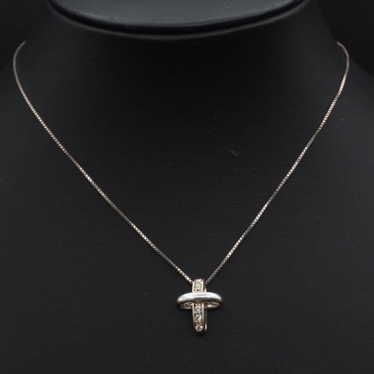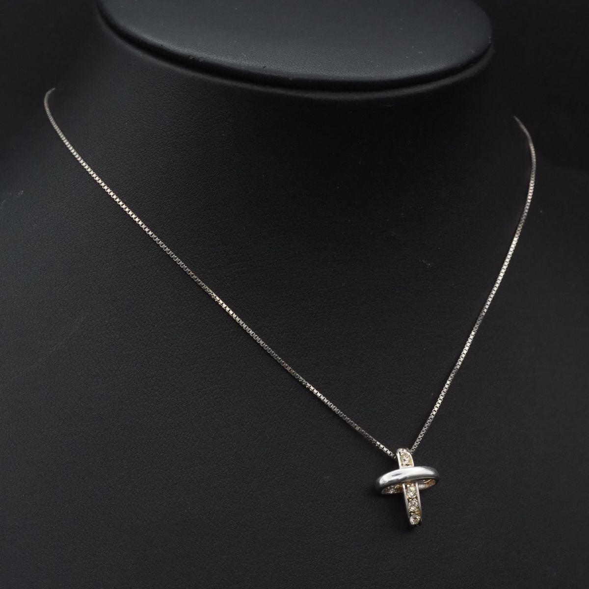 C805 ダイヤモンド風 925 ITALY刻印 ペンダント ネックレス クロス デザイン シルバー