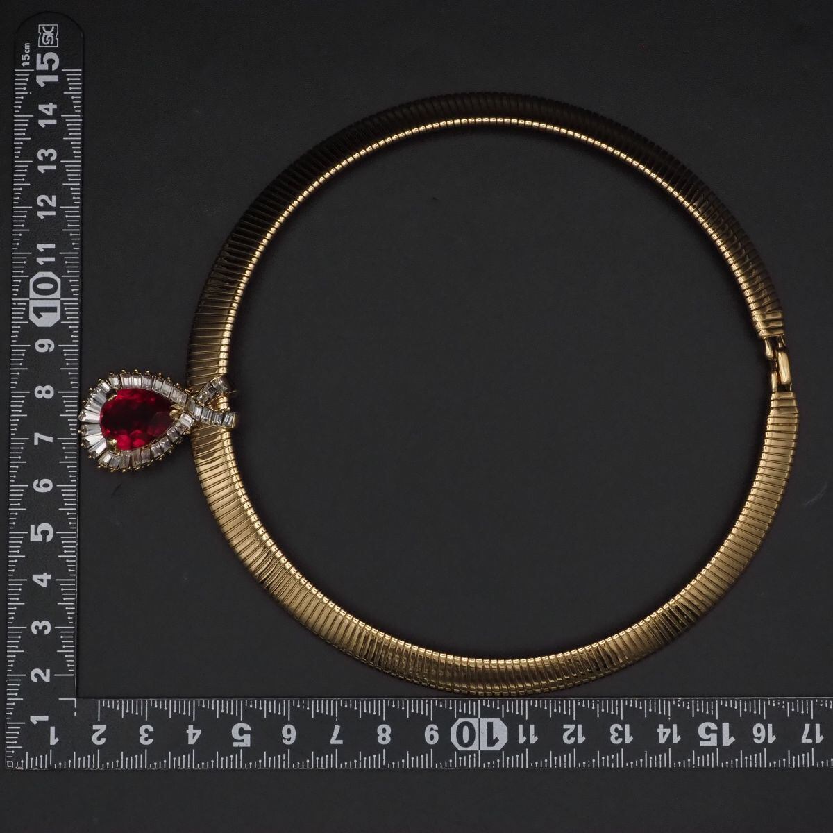 F071 ドーラン D'ORLAN チョーカー ネックレス ルビー風 ラインストーン ゴールド デザイン