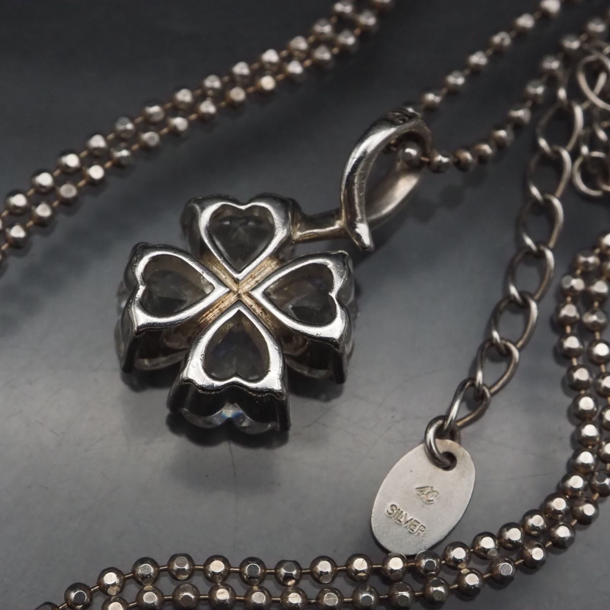 C857 4℃ ヨンドシー ダイヤモンド風 STERLING SILVER刻印 ペンダント ネックレス クローバー デザイン シルバー