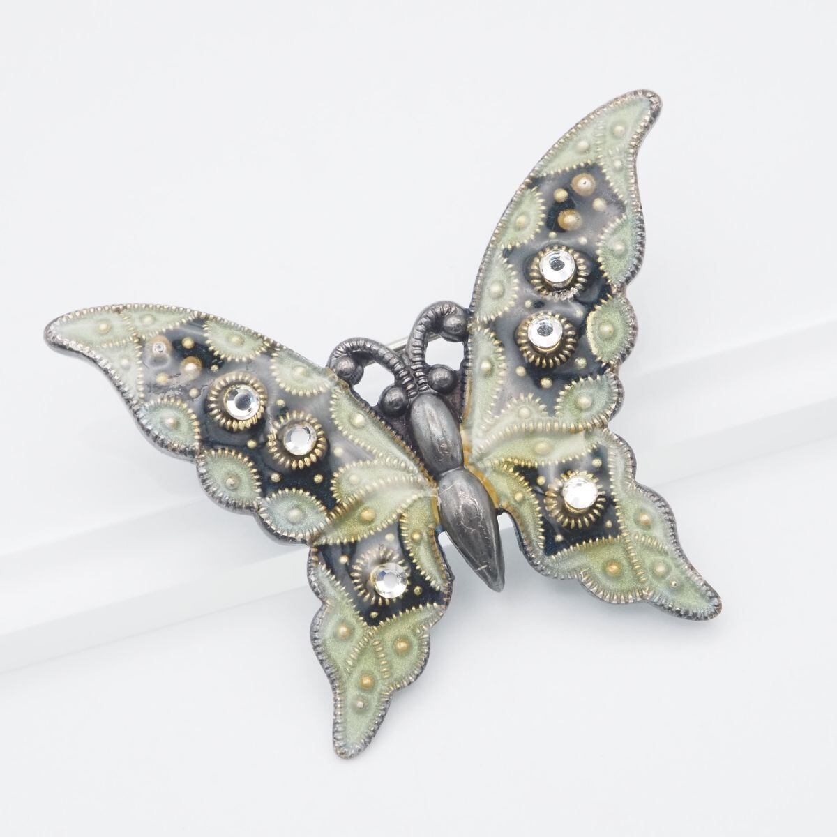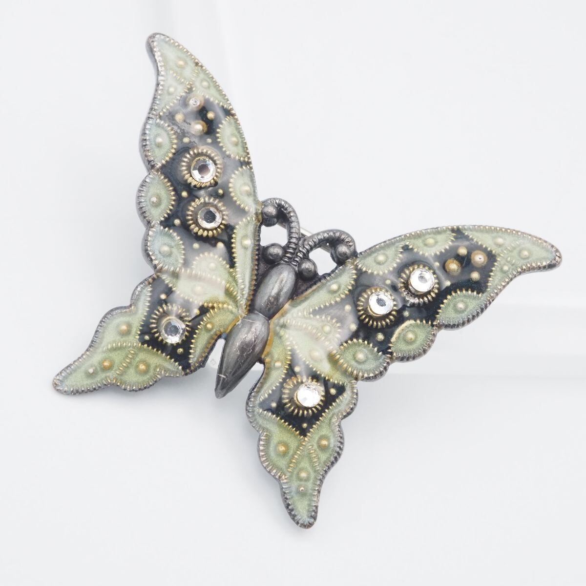 C724 ブローチ 蝶 バタフライ ダイヤモンド風 エナメル細工 デザイン コスチュームジュエリー