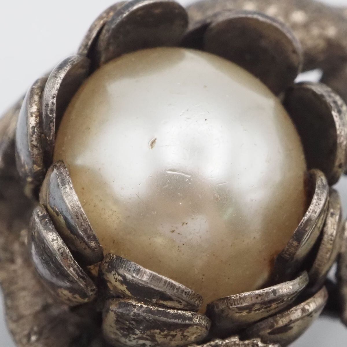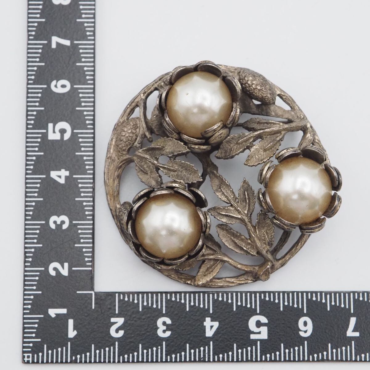 F450 ヴィンテージ ブローチ 大ぶり フェイクパール フラワー デザイン シルバー コスチュームジュエリー