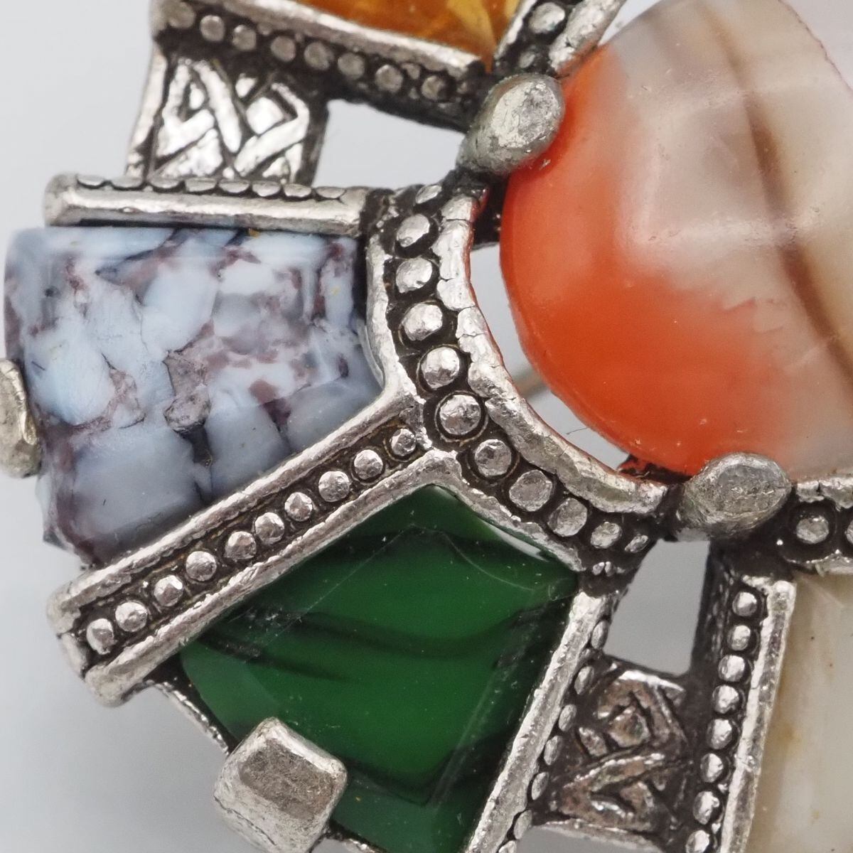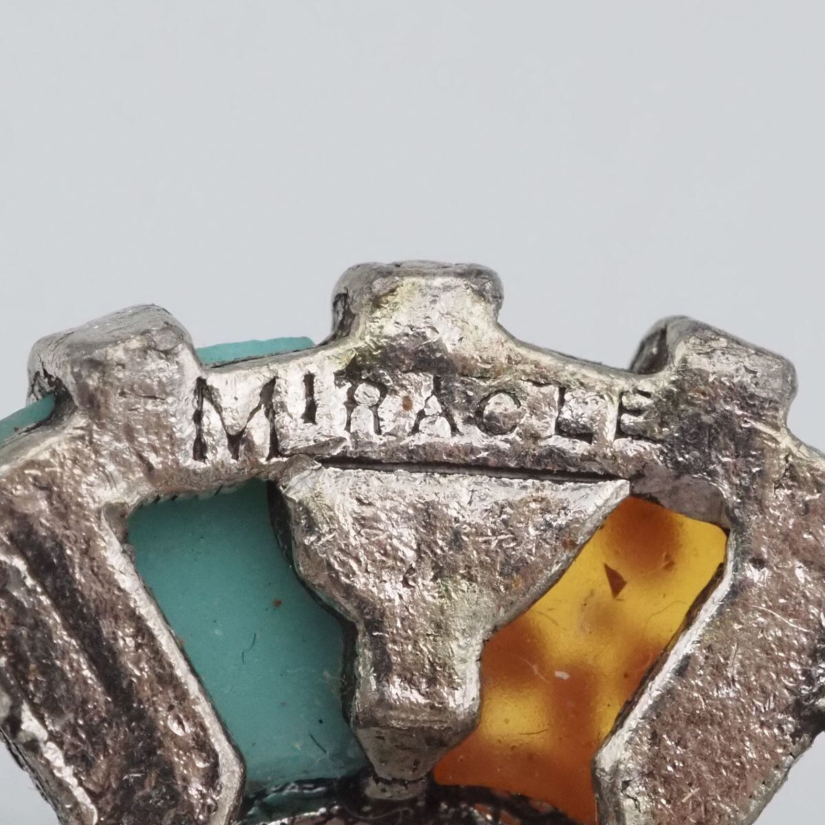 F311 イギリス ヴィンテージ MIRACLE ミラクル ブローチ 天然石風 マルチカラー デザイン シルバー 英国 アンティーク