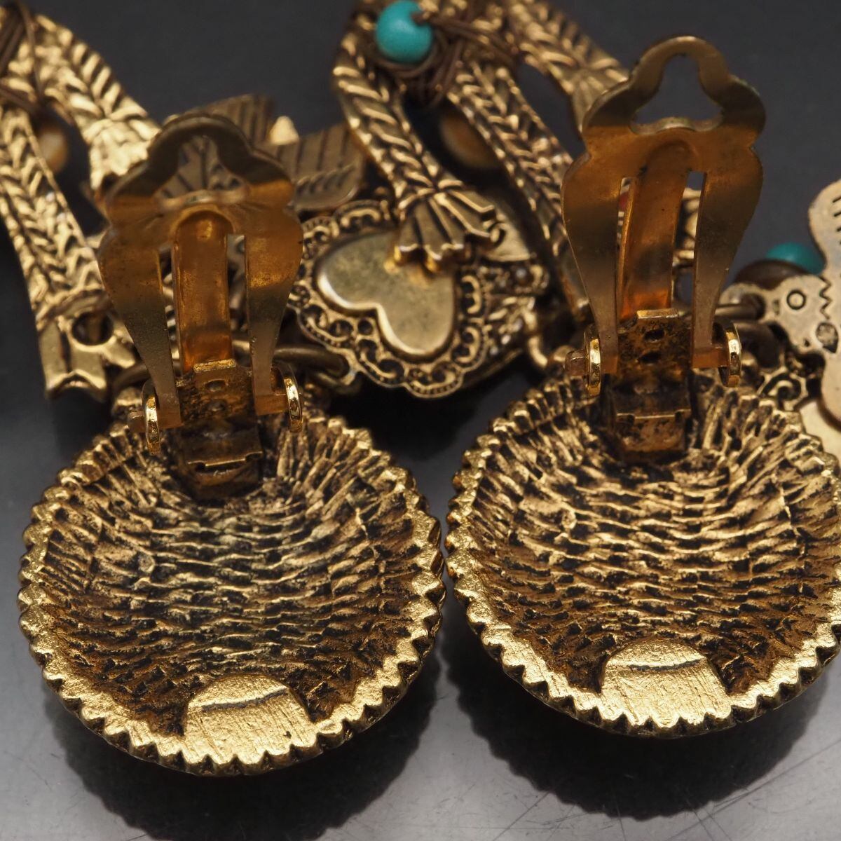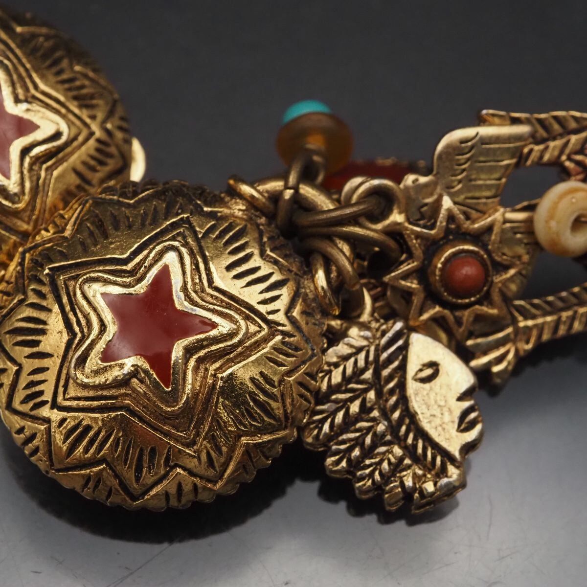 F438 ヴィンテージ イヤリング スター チャーム サンダーバード カラーストーン風 ゴールド デザイン インディアンジュエリー